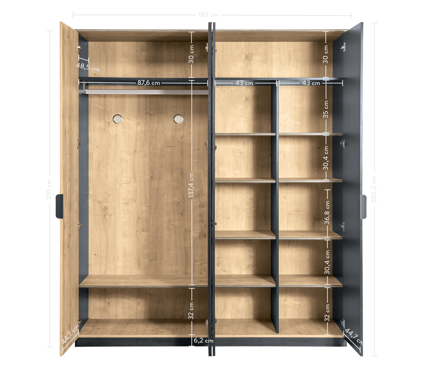 Gjerësia: 182 cm | Lartësia: 210 cm | Thellesi: 53 cm