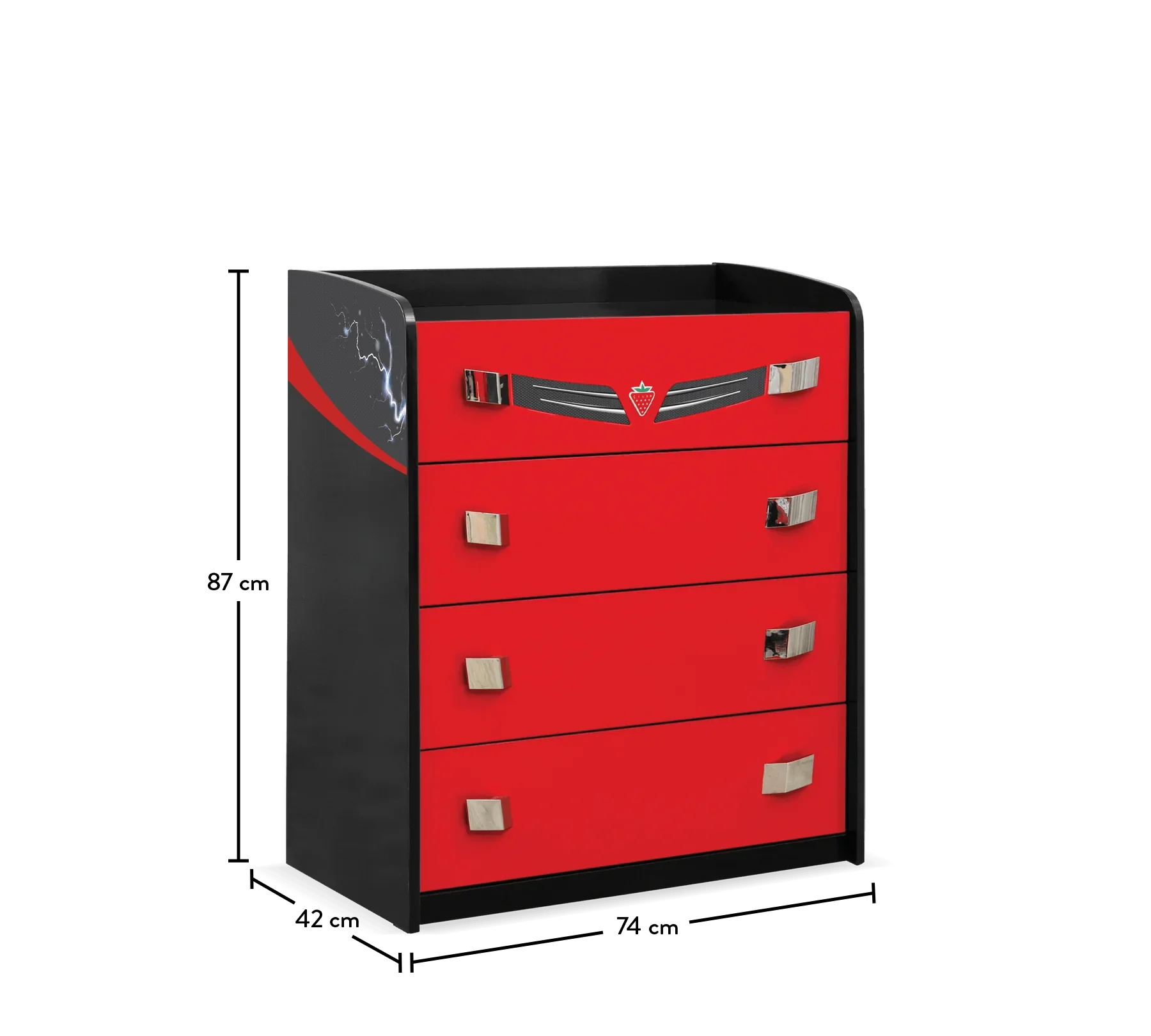 Champion Racer Dresser, e cila ka katër sirtarë të thellë, ofron hapësirën që ju nevojitet dhe mbron fëmijën tuaj nga aksidentet e mundshme me qoshet e saj të rrumbullakosura.