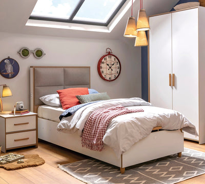 Rustik White Shtrat me bazë (mekanizëm hapjeje)