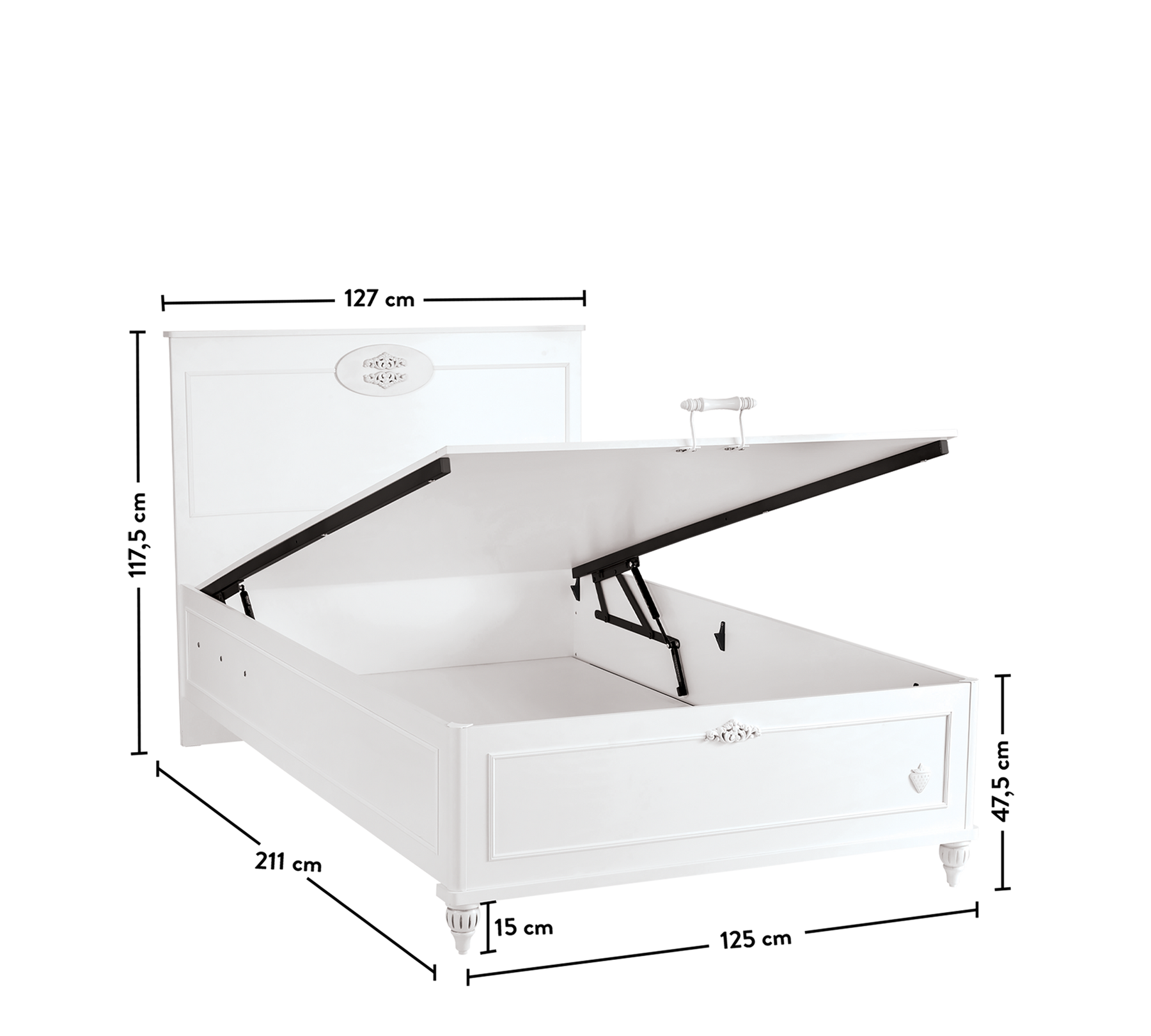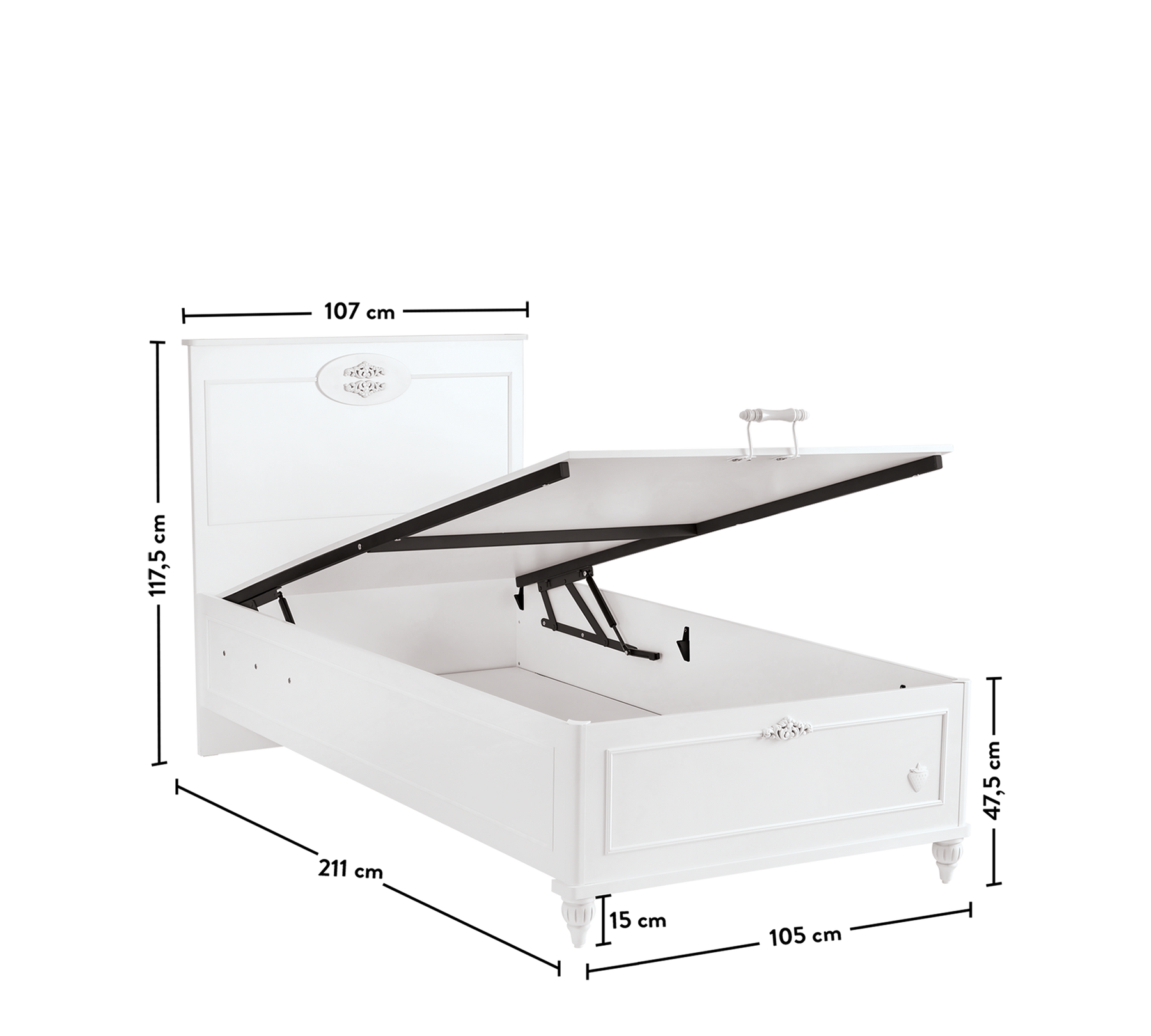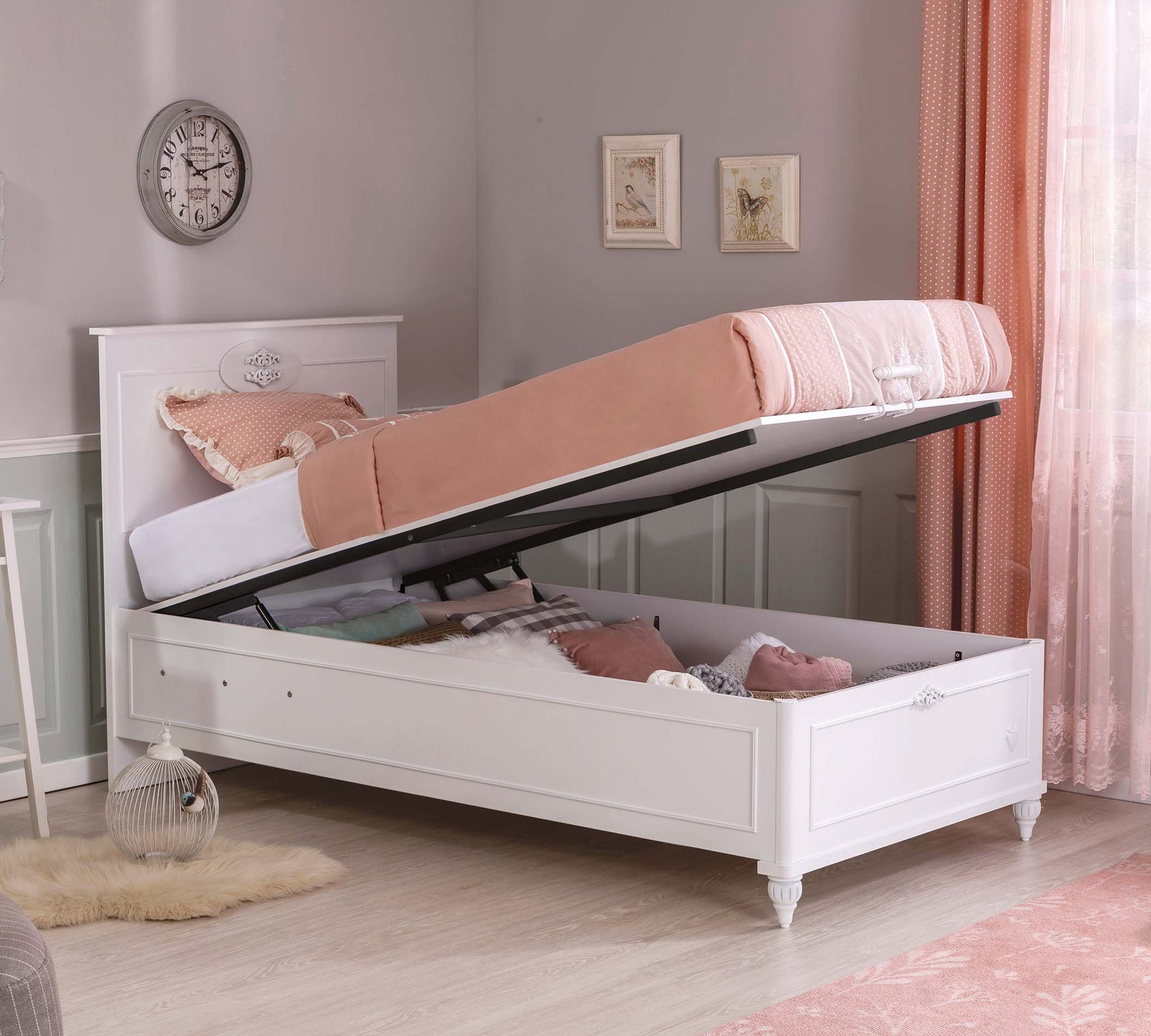 Romantica Bazalı Karyola, dizajni i saj elegant dhe ergonomik pasqyron stilin unik të serisë. Me një hapësirë të gjerë brenda, mund të mbash lehtësisht rrobat në rritje të fëmijës tënd. Falë amortizuesit me bllokim të sigurisë, mund ta hapësh dhe mbyllësh bazën me siguri.