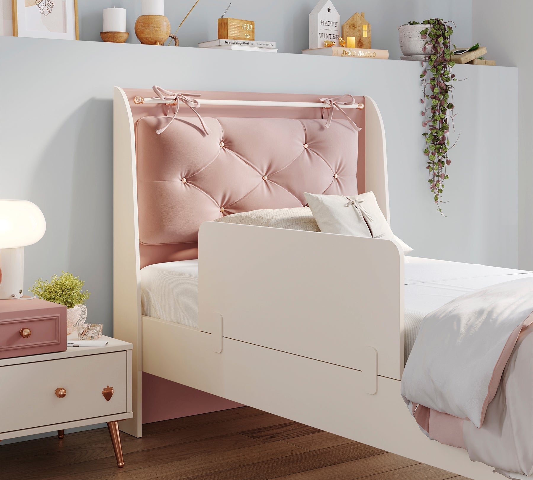 Korkutë e dizajnuar me kombinimin e ngjyrave Trëndafili dhe Kremi Vizoni, është prodhuar posaçërisht për t'u përshtatur me modulat e krevatit për siguri shtesë. Pjesa e poshtme metalike ofron qëndrueshmëri ndaj oksidimit dhe korrozionit përmes teknikave speciale të mbulimit.