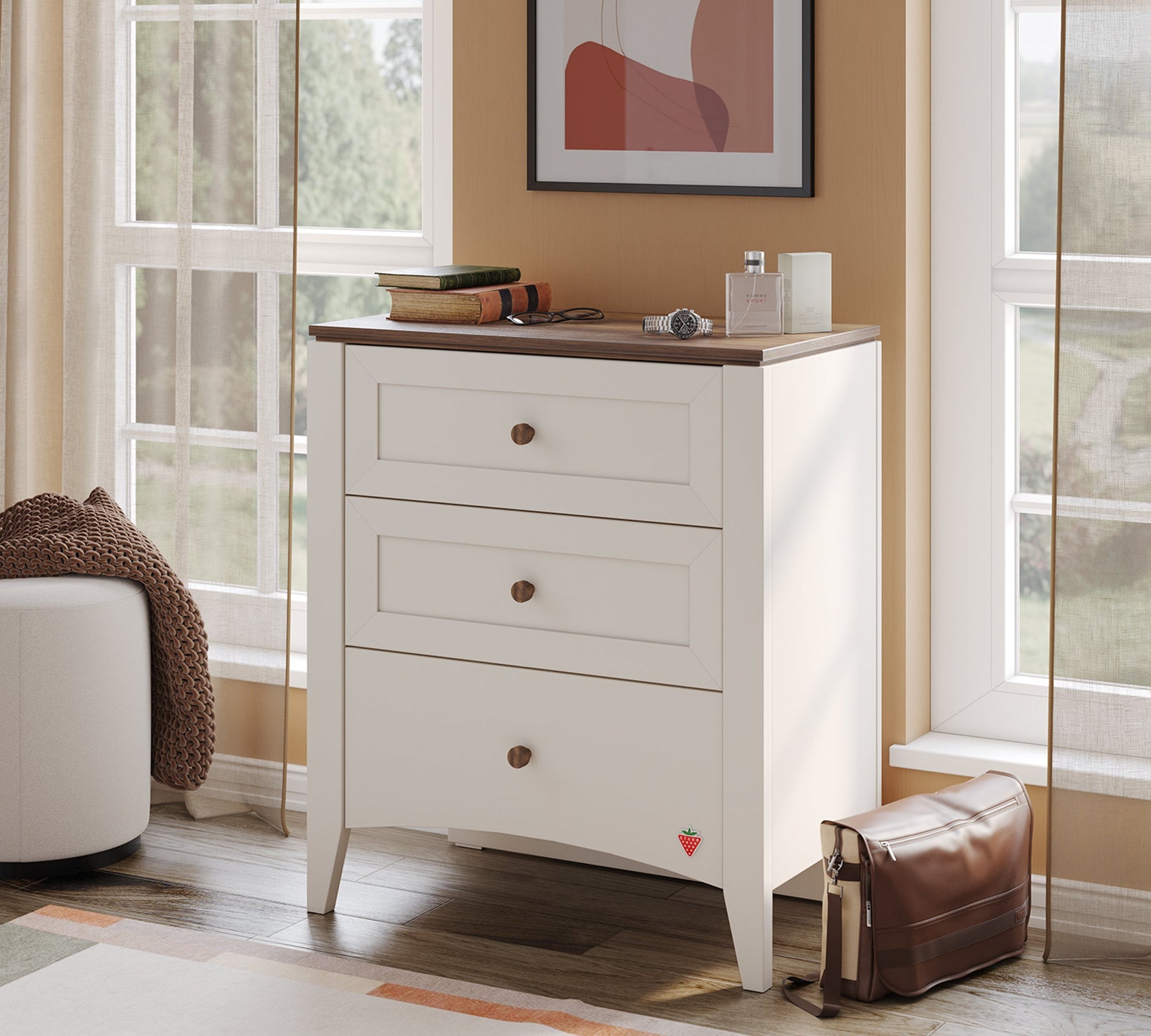 Dizajni modern dhe funksionaliteti i Lapel Şifonyer e bëjnë atë të spikatë në Hamilton dhe Vario Vizon Krem kombinim ngjyrash duke bashkuar estetikën dhe stilin. Struktura e gjerë dhe e dobishme e sirtarëve ju lejon të ruani gjërat tuaja në mënyrë të rregullt.