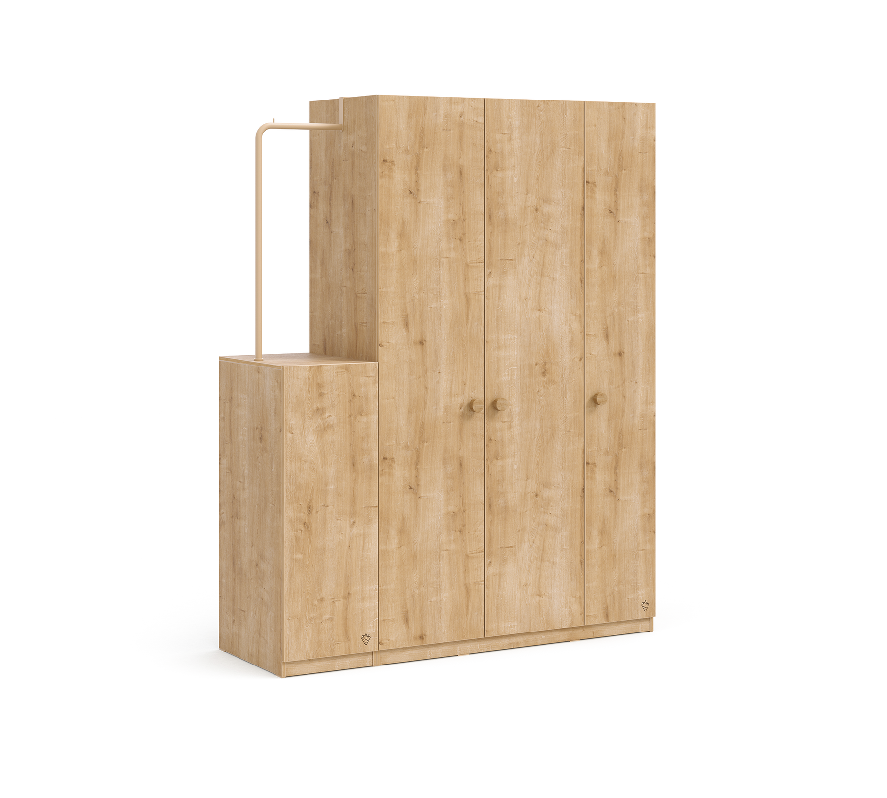 Një zgjidhje ideale për hapësira të ngushta, Mocha dollap i vogel spikat me dizajnin minimalist dhe detajet natyrale të drurit. Ky modul, i cili mund të përdoret në mënyrë koherente me dollapët e tjerë Mocha në dhomat për të rinjtë, tërheq vëmendjen me strukturën e tij të thjeshtë dhe funksionale.