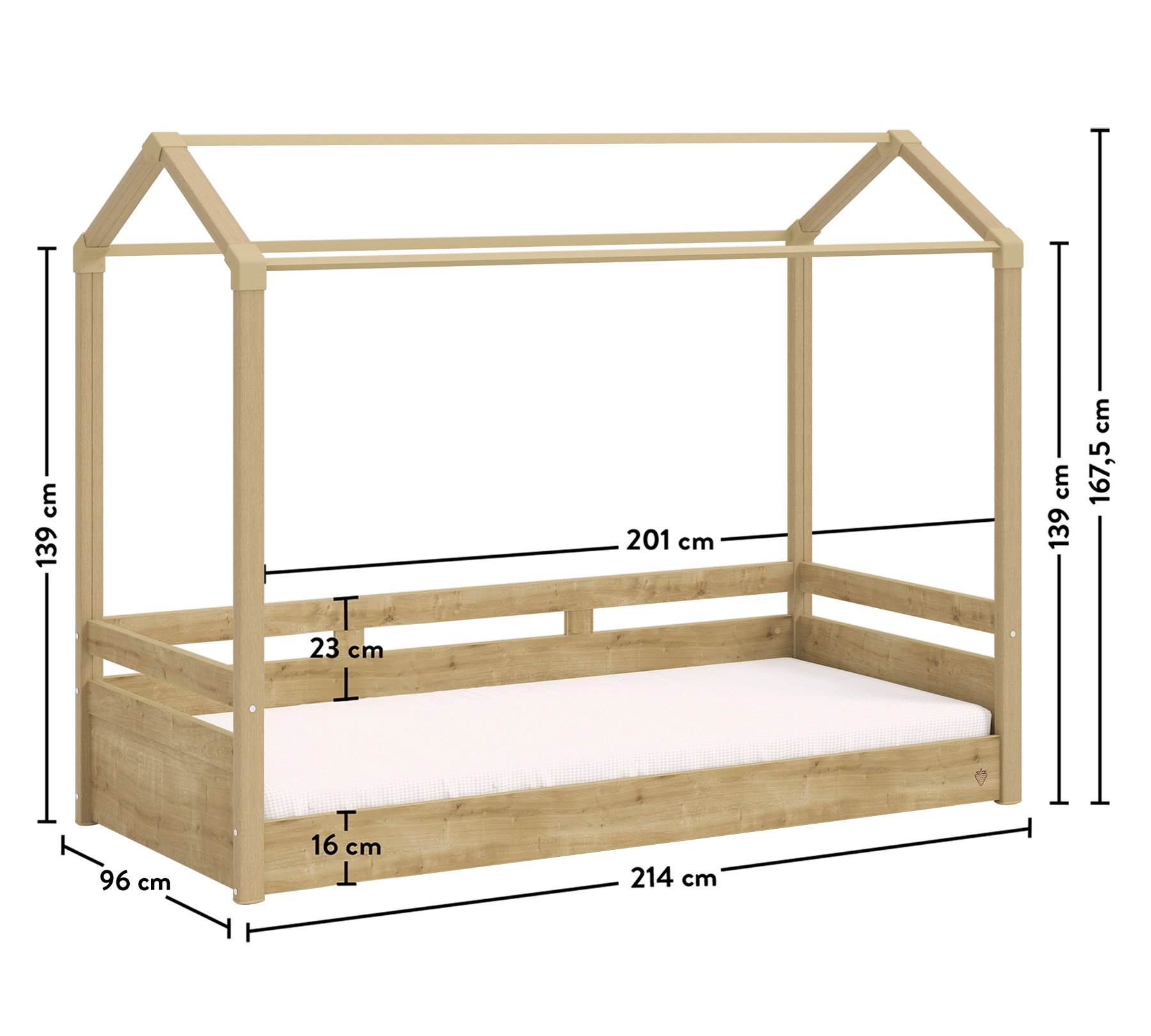 Përfundoni Krevatin Mocha me Çati të Drejtë me tendat në ngjyrën që do t'i pëlqejnë fëmijët tuaj, duke krijuar një ambient ku ata do të përjetojnë aventura të mrekullueshme. Krevati me një madhësi dysheku prej 90x200 cm ka një kapacitet mbajtës prej 130 kg dhe ndërtim të forte që mund të përdoret për vite të gjata.