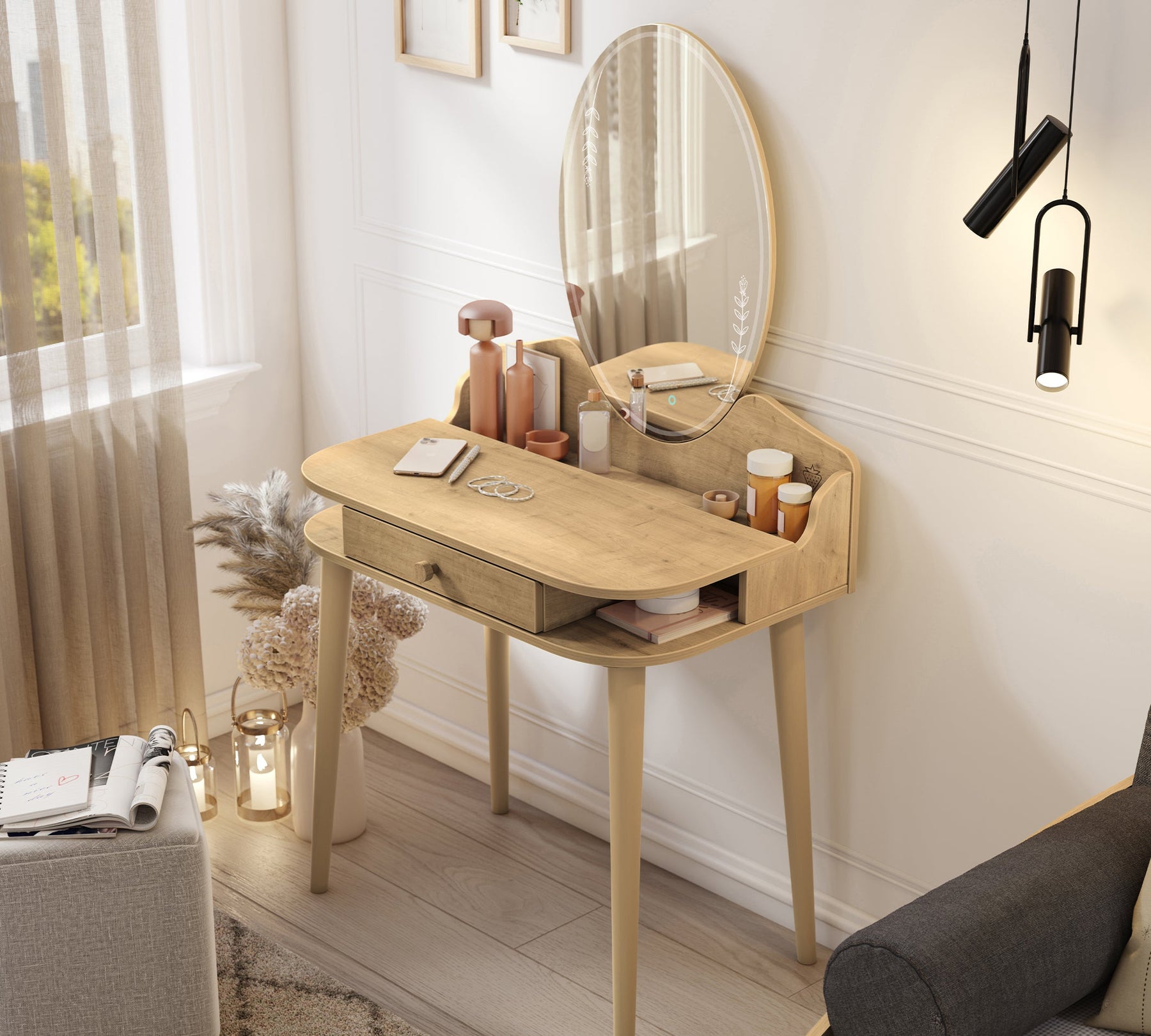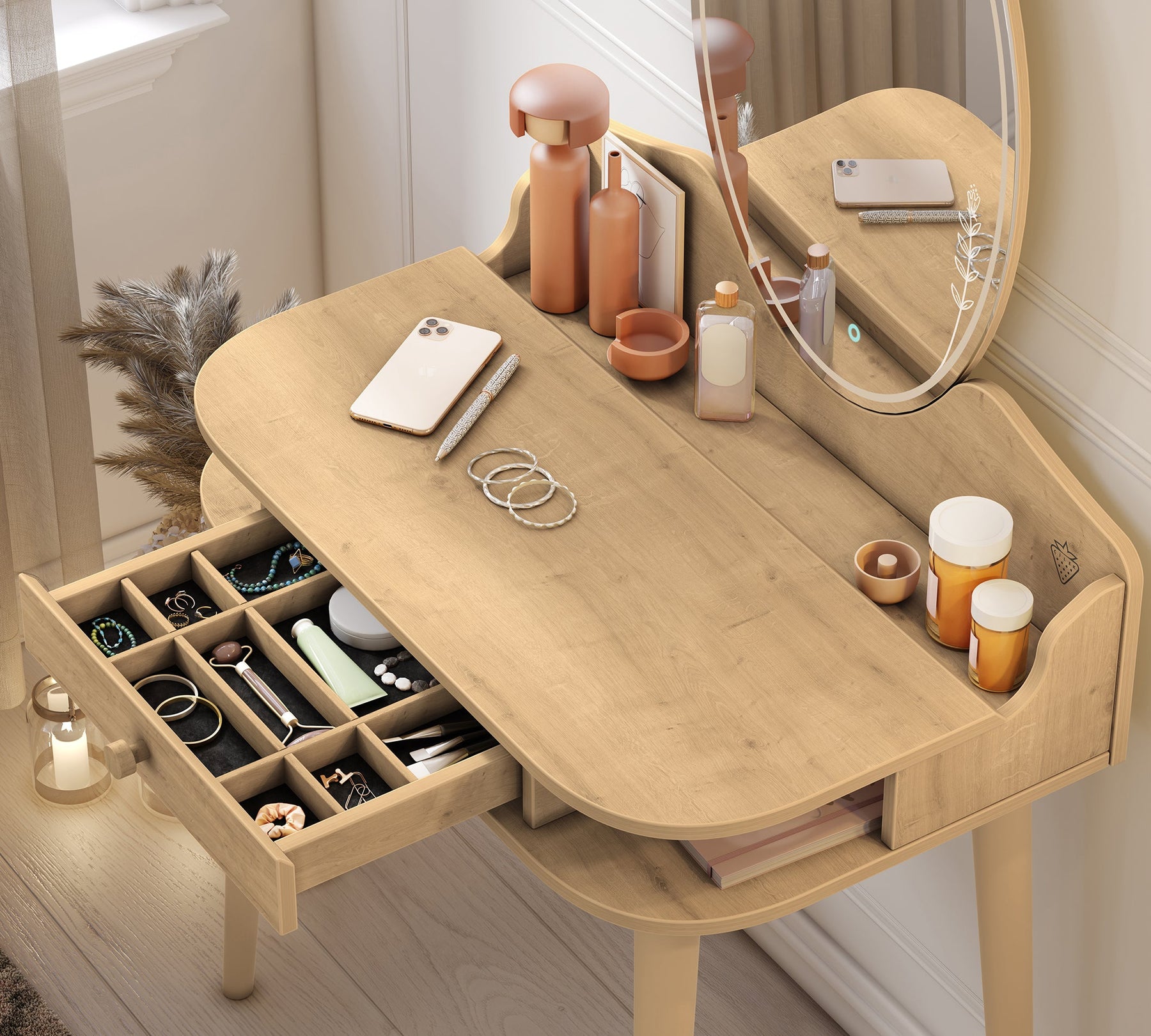 Përzgjedhja e Tryezave të Makyajit që bashkon stilin dhe funksionalitetin në rutinën tuaj përgatitore, tani është pranë jush me materiale të cilësisë së lartë dhe dizajn elegant. Ofron përshtatje të përkryer me ngjyrat e veçanta të dispozitivit tuaj.