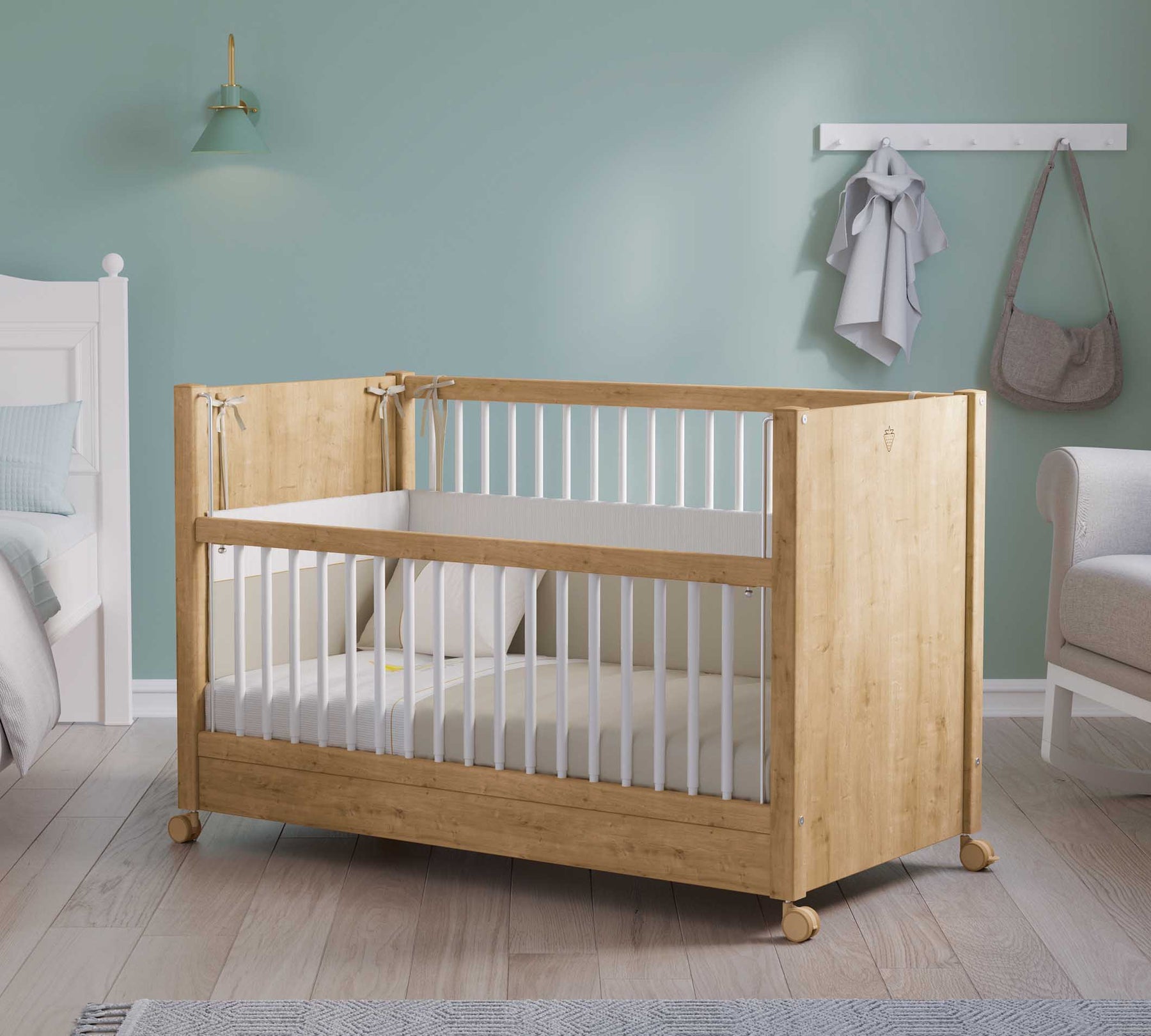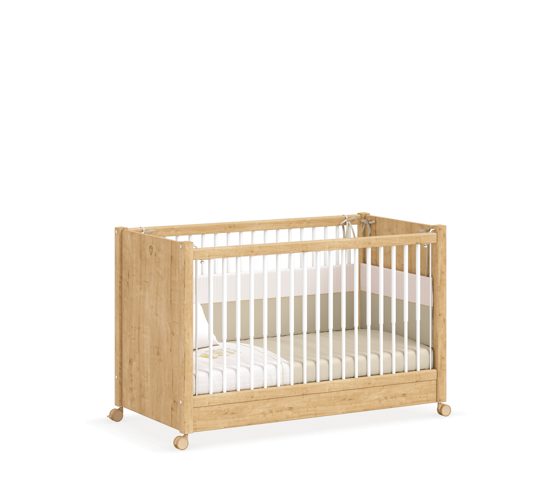 Shtretër bebesh me rrota; Përveç përdorimit praktik me 4 rrotat e tij rrotulluese 360°, ai ofron avantazhin e përdorimit shumëfunksional me kangjella e ashensorit që i lejon nënës të arrijë lehtësisht tek fëmija i saj. Dy nga rrotat me frena u instaluan për të siguruar qëndrueshmërinë e shtratit të foshnjës. Falë rrotave, produkti mund të zhvendoset lehtësisht dhe të përdoret kudo në dhomë.