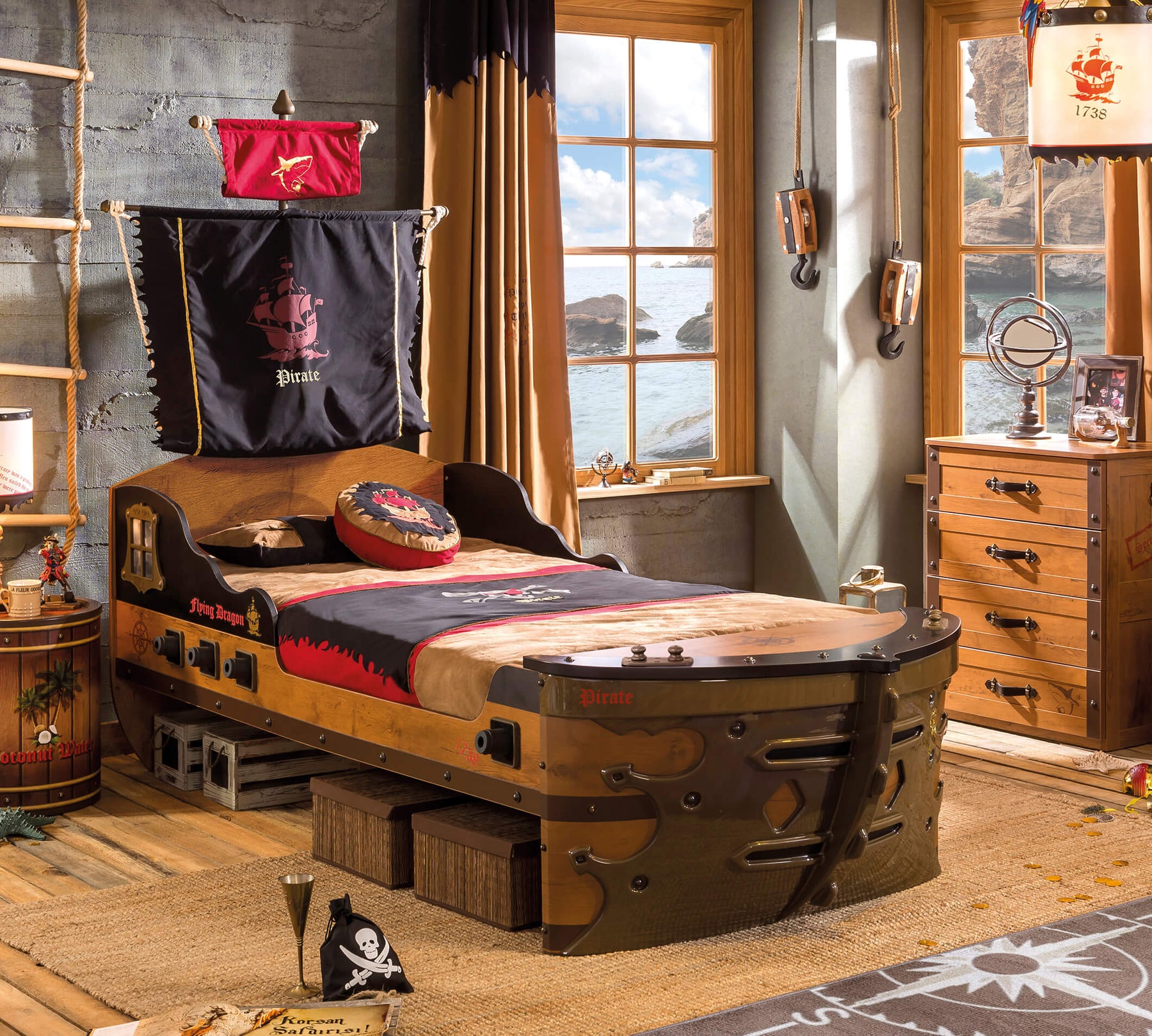 Shkëlqimi i ëndrrave, është e mundur të hidhet në detet e gjerë me Pirate Dhomë e përzgjedhur, e dizajnuar për ata që duan të përjetojnë aventurën! Me kushtin që të lani dhëmbët, të flini në kohë dhe të filloni ditën me emocion...