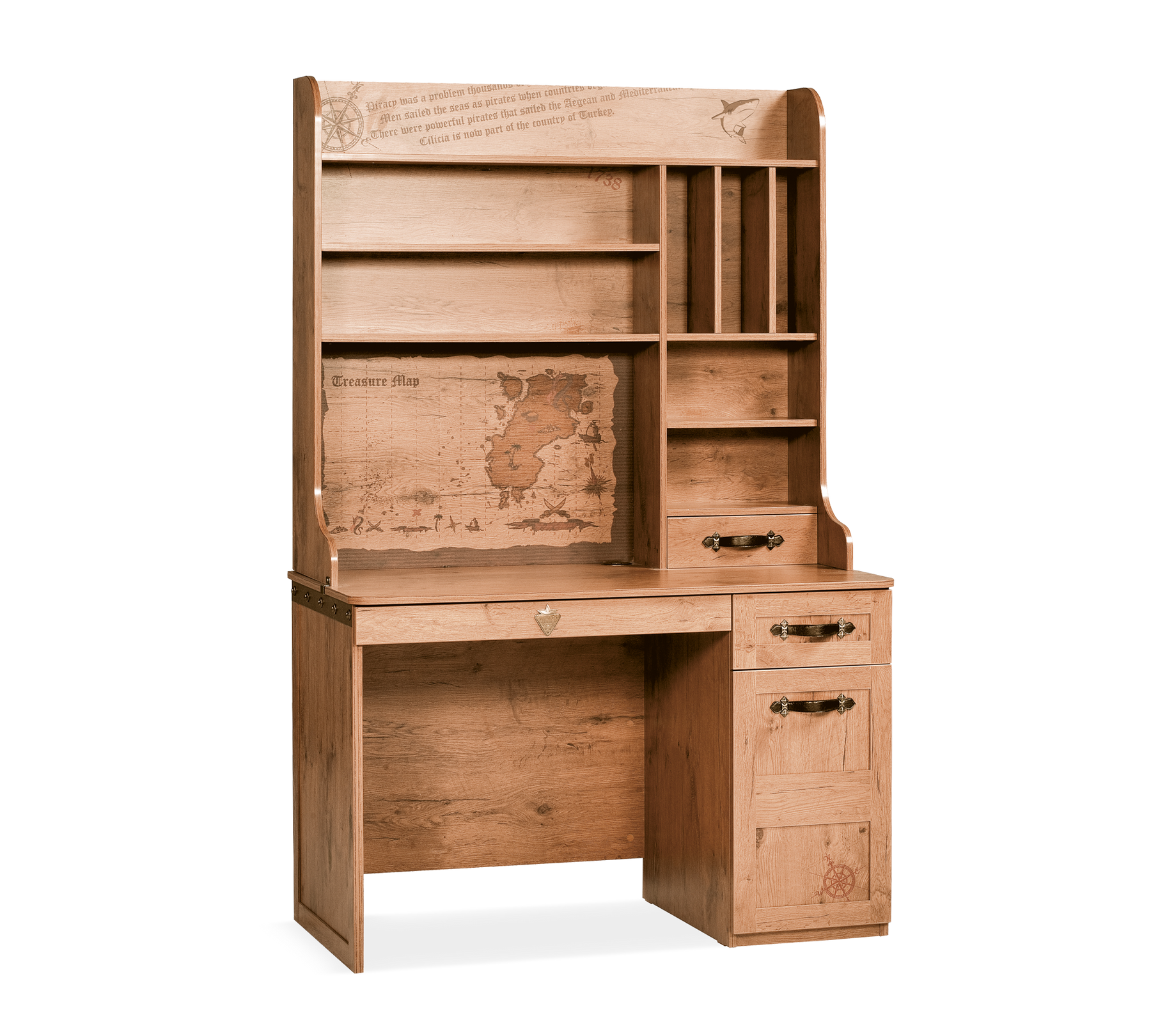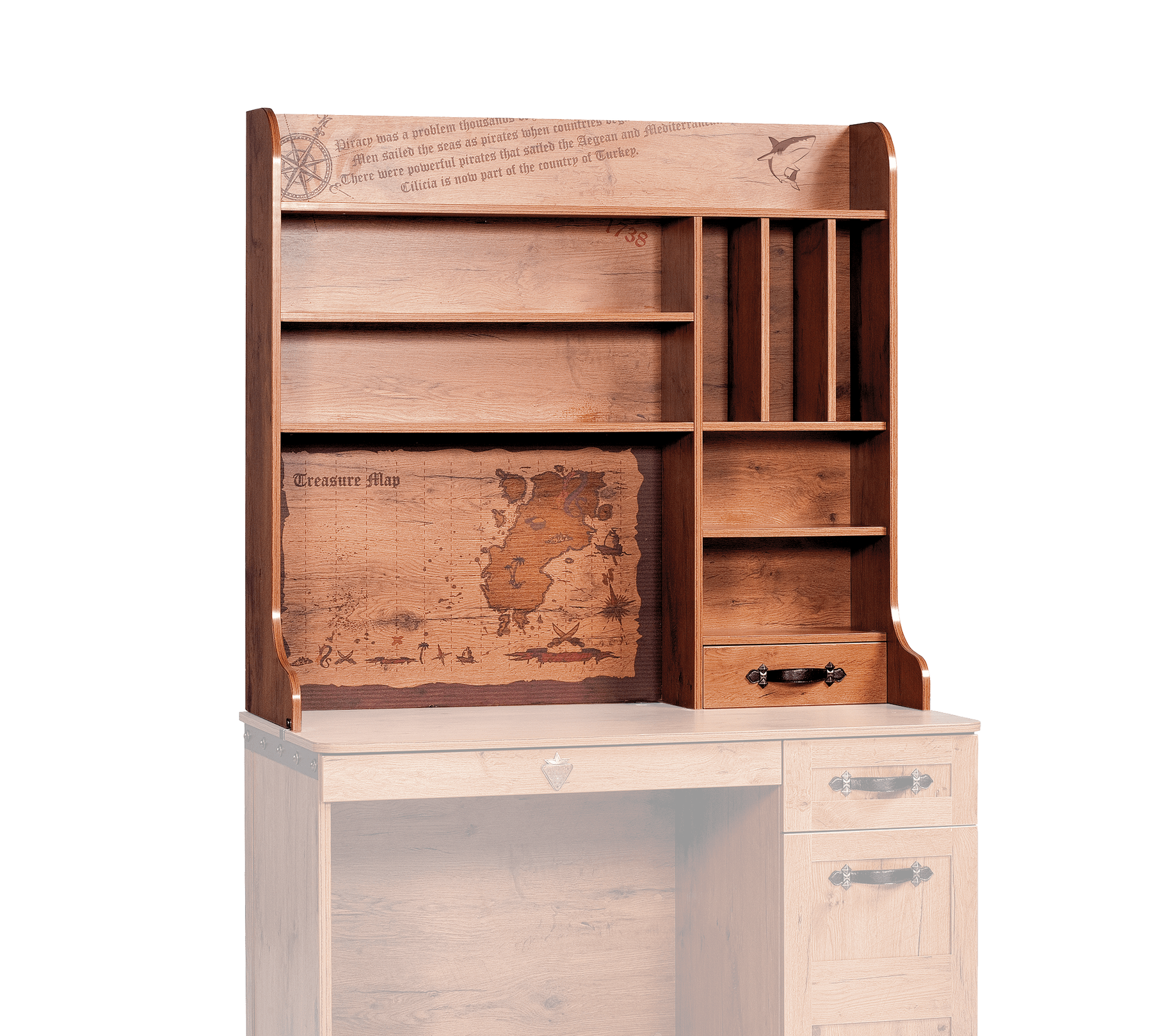 Pirate Çalışma Ünitesi, me printimet që kujtojnë një hartë thesari dhe ndarjet funksionale, është kandidati perfekt për të sjellë një atmosferë nostalgjike postare në dhomën e fëmijëve! Njësi që lidhet me linjat e hollë të artizanatit dhe teksturën e veçantë të drurit sjell në shtëpi, me këndet e saj të lakuara, një moduli të veçantë që duket sikur ka dalë nga thellësitë e historisë në dhomat e fëmijëve. Me shumë raftë të dobishëm, është jashtëzakonisht e përshtatshme për libra, lapsa, fotografia dhe thesare. Mund të jeni të sigurt që do të argëtoheni shumë ndërsa e dizajnoni këtë dhomë me fëmijën tuaj.
