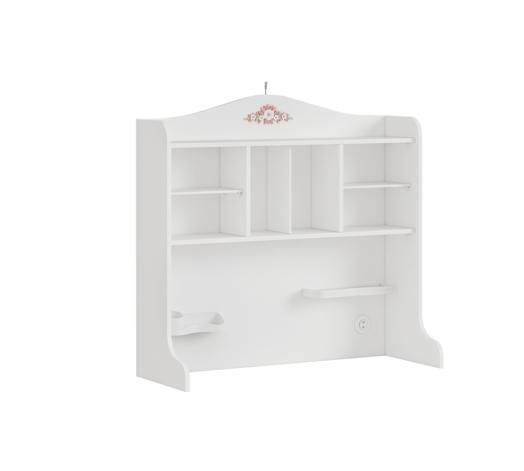 Me detajin e luleve që i jep një atmosferë të rafinuar dhomës, njësia ergonomike e dizajnuar në mënyrë armonike me tavolinën e punës së serisë Rustik i Bardhë mund të montohet në mur me ndihmën e pajisjeve të lidhjes, duke siguruar sigurinë e fëmijëve tuaj.