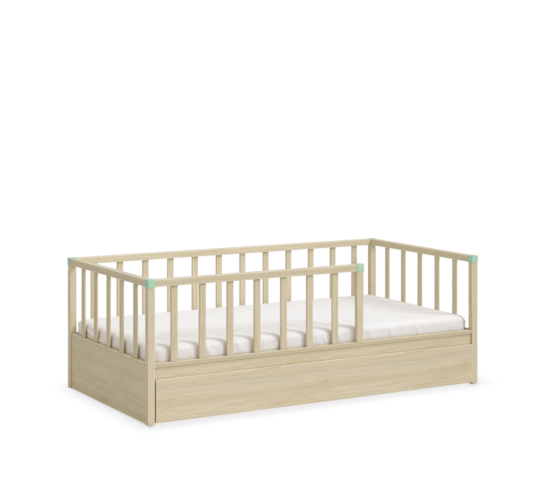 Kraftat në 3 anët e karyolës janë të dizajnuara për t'u siguruar një marrëdhënie të sigurt, duke ofruar një dizajn të lartë nga tavani. Karyolat mund të blihen si njësi e vetme, ose me mundësinë e blerjes së karyolës së poshtme, duke ofruar një hapësirë gjumi të dytë ose një hapësirë ideale ruajtjeje ndërsa fëmija juaj rritet.