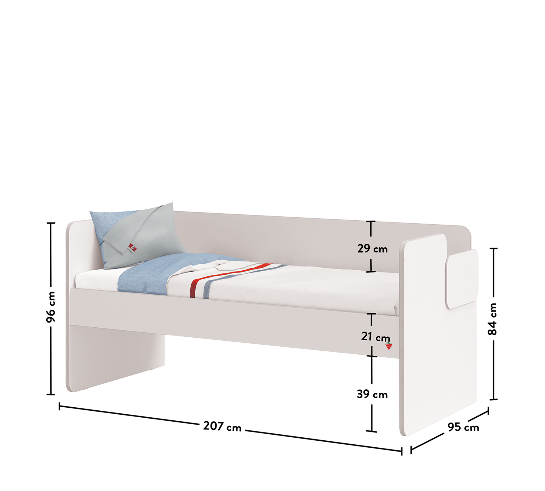 Stüdyo ranzanın üst uyku alanı olan Stüdyo Üst Karyola Beyaz, metal ya da dolaplı merdivenle birlikte kullanılabilir. Başucu kısmındaki portatif kitaplık, okuma tutkunları için işlevsel bir çözüm sunar.
