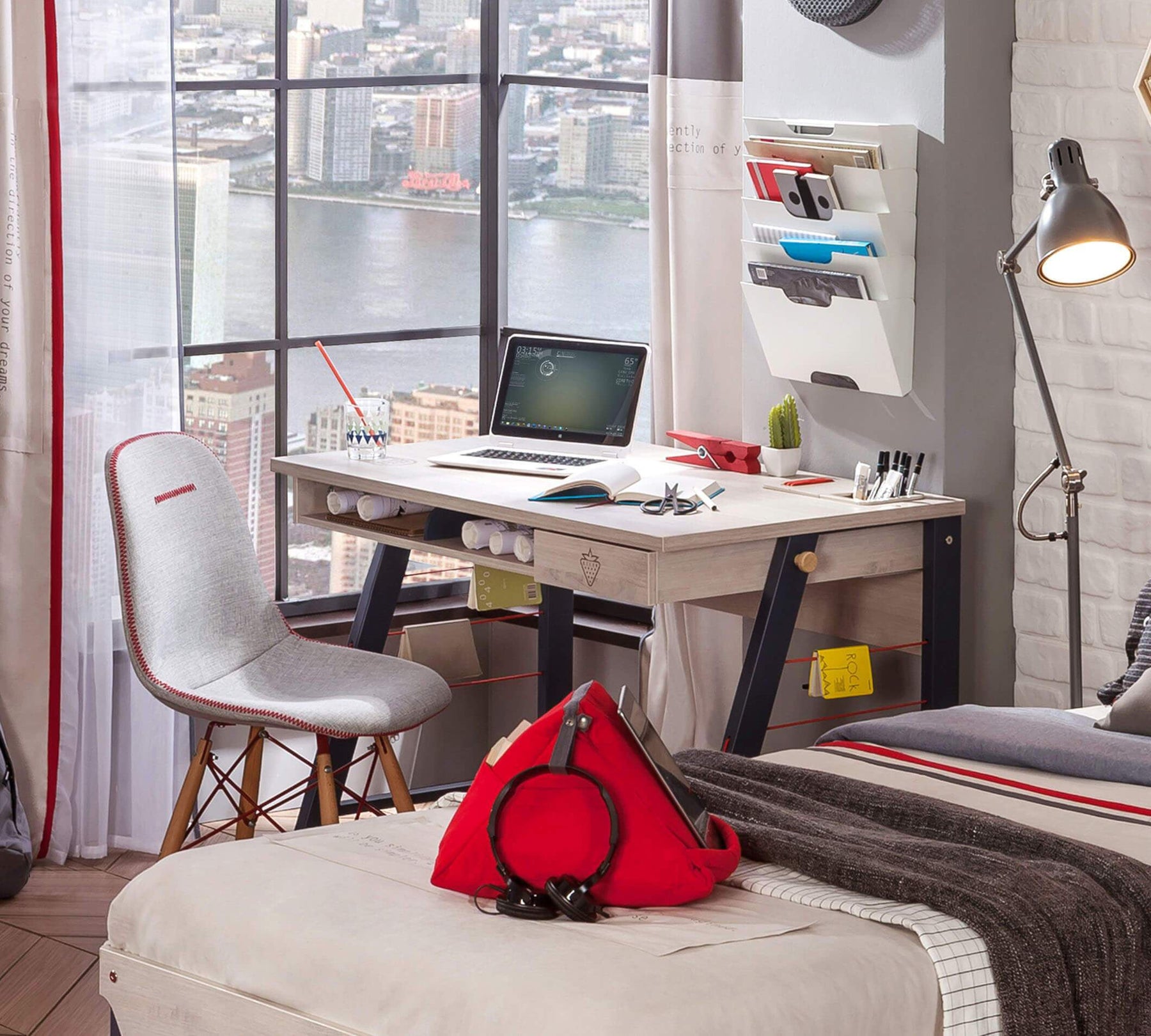Trio tavoline pune e mesme i ndihmon të rinjtë të qëndrojnë rehat gjatë studimit. Duke sjellë një pamje të thjeshtë dhe moderne ambienteve të jetesës së të rinjve, Trio tavolin punee mesme sjell një pamje të rregullt me veçoritë e saj funksionale. Ka një raft për të mbajtur projektet tuaja të veçanta dhe të rëndësishme. Gjërat personale mund të organizohen lehtësisht me sirtarin anësor dhe pajisjet fleksibël të varjes.