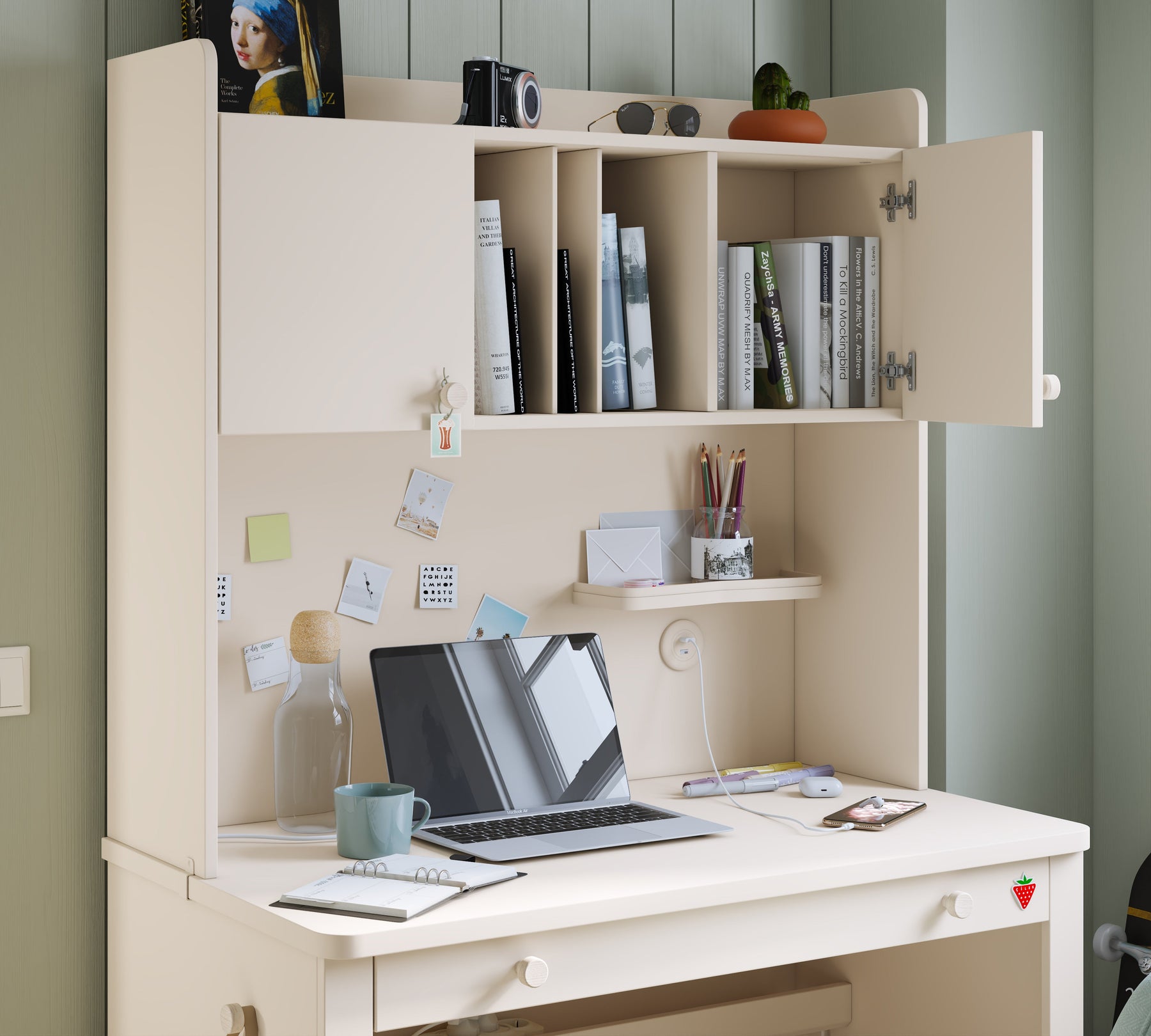 Varia Kapaklı Çalışma Ünitesi, që sjell elegancë dhe rregull në zonën e punës, me shumë seksione rafesh dhe strukturën me dy dyer, siguron që të mbani librat, ditarët dhe sendet personale të organizuara. Me përmasat e saj të përshtatshme për përdorimin e kompjuterit, bën që orët e studimit dhe punës t'i bëni më efikase. Me një njësie karikimi me dalje USB dhe Type-C në majë, sjell teknologjinë në zonën tuaj të punës, duke ju lejuar të ngarkoni pajisjet tuaja lehtësisht. Me strukturën e saj të sigurt dhe të fortë, gjithashtu ofron rehati për përdorim afatgjatë falë pajisjes lidhëse që parandalon majtjen. Ky unitet që kombinon funksionalitetin dhe dizajnin modern do të jetë përbenësi më i mirë i tavolinës suaj të punës.