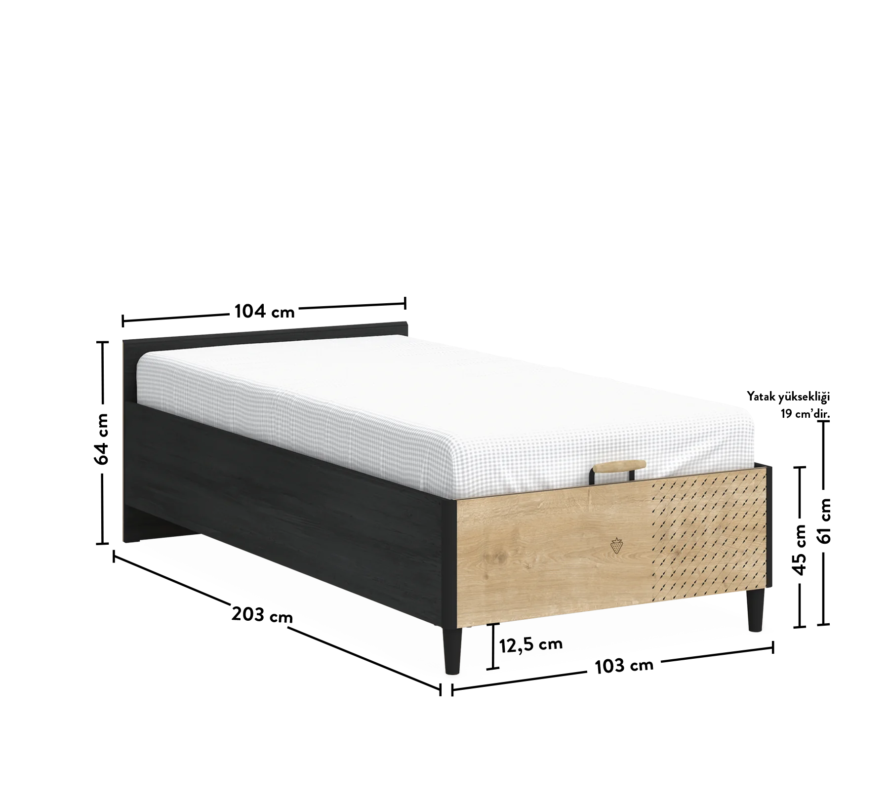 Bazat e karrigeve me dimensionet 100x200 cm, të dizajnuara për dhoma të vogla, kanë një strukturë këmbësh me lartësi 12 cm, që lejon pastrimin e lehtë me robotët pastrues.