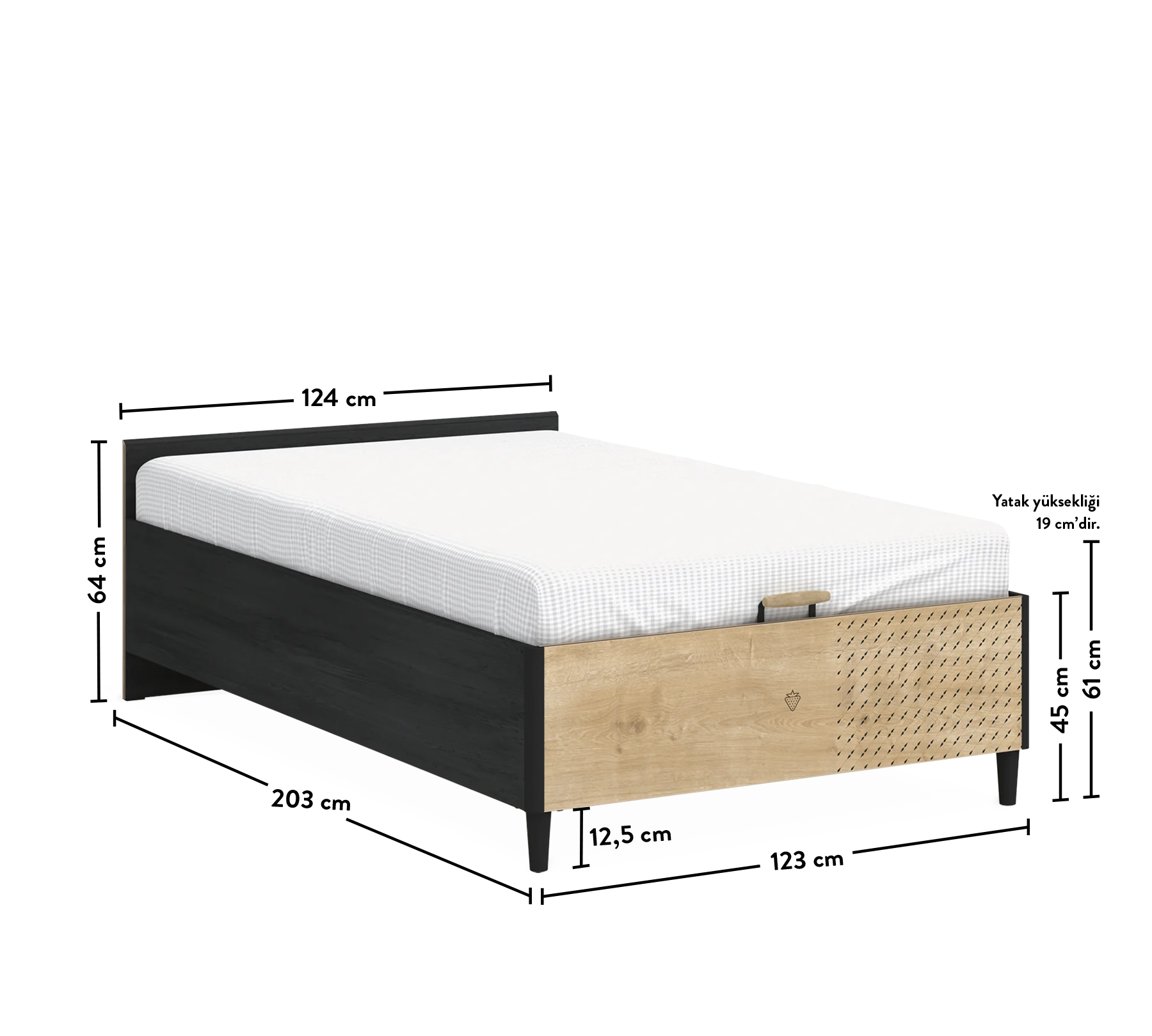 Krevatet Bazë me dimensionet 120x200 cm, të dizajnuara për dhoma të vogla, kanë një ndihmës ekzistues 12 cm të lartësisë, duke e bërë too të lehtë për t'u pastruar me pastrues robotikë.