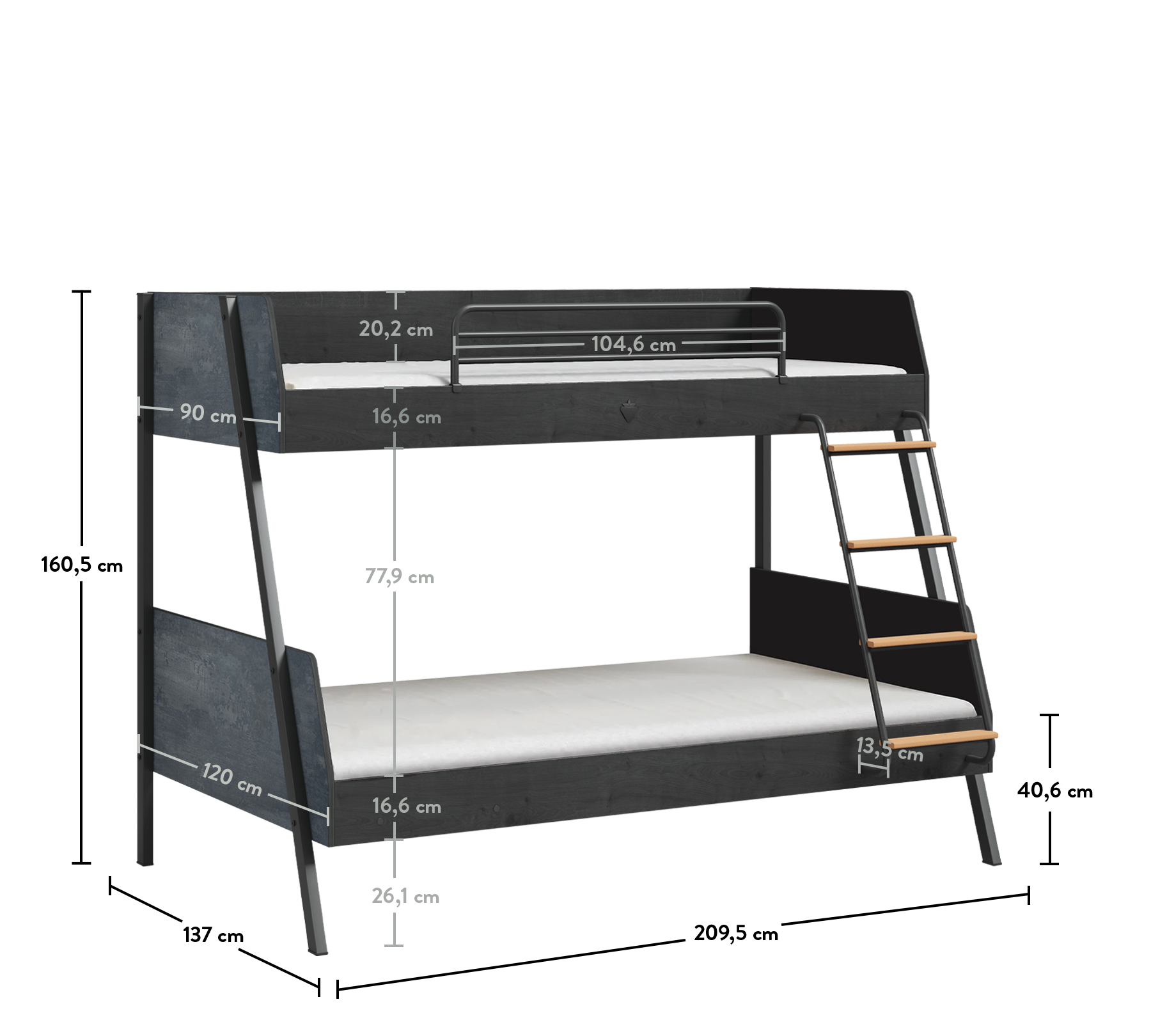 Ranza Gjerë Metali të Errët ofron maksimumin e fitimit të hapësirës në dhomë me dy përmasa të ndryshme për krevat.