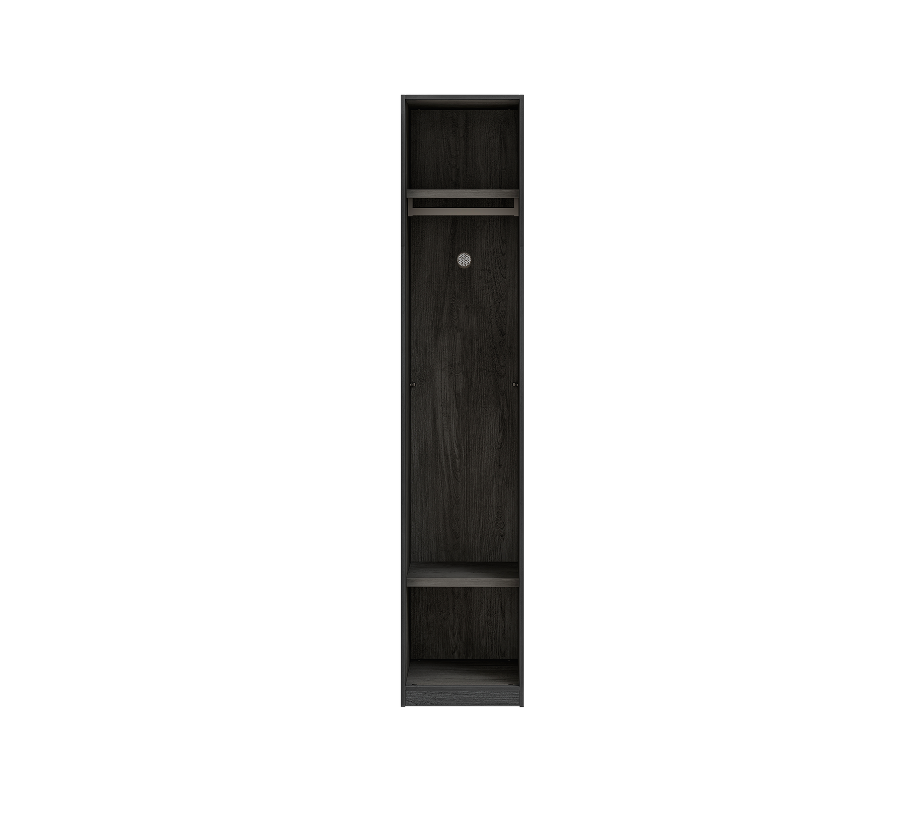 Dolap me një derë dhe kapak xhami ofron maksimum ruajtje edhe në hapësira të ngushta, duke i dhënë dhomave një prekje moderne. Kapaku prej xhami të temperuar tregon brendësinë me elegancë dhe ofron qëndrueshmëri për një përdorim të gjatë. Me tubin e varjes të integruar, mund të mbani rrobat e tua të organizuara, ndërsa sistemi i bishtit me fren mundëson mbylljen e derës në heshtje.