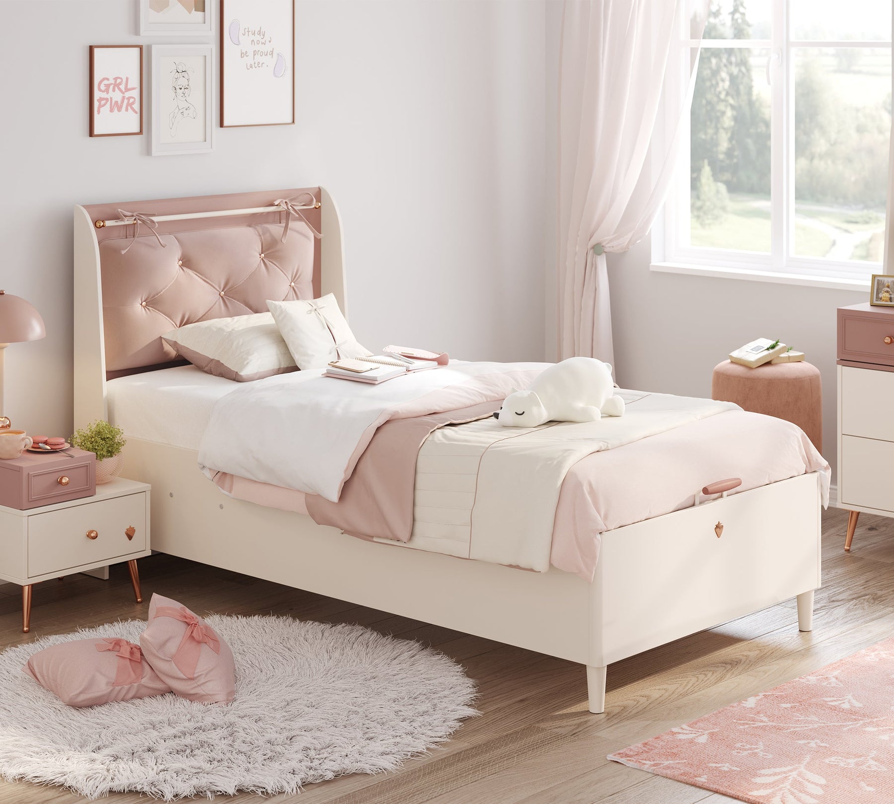 100 cm Krevat me Baza e çon përvojën e gjumit në nivele më të larta, duke ofruar një hapësirë praktike për ruajtje nën bazë për t'u organizuar lehtësisht me sendet e tua.