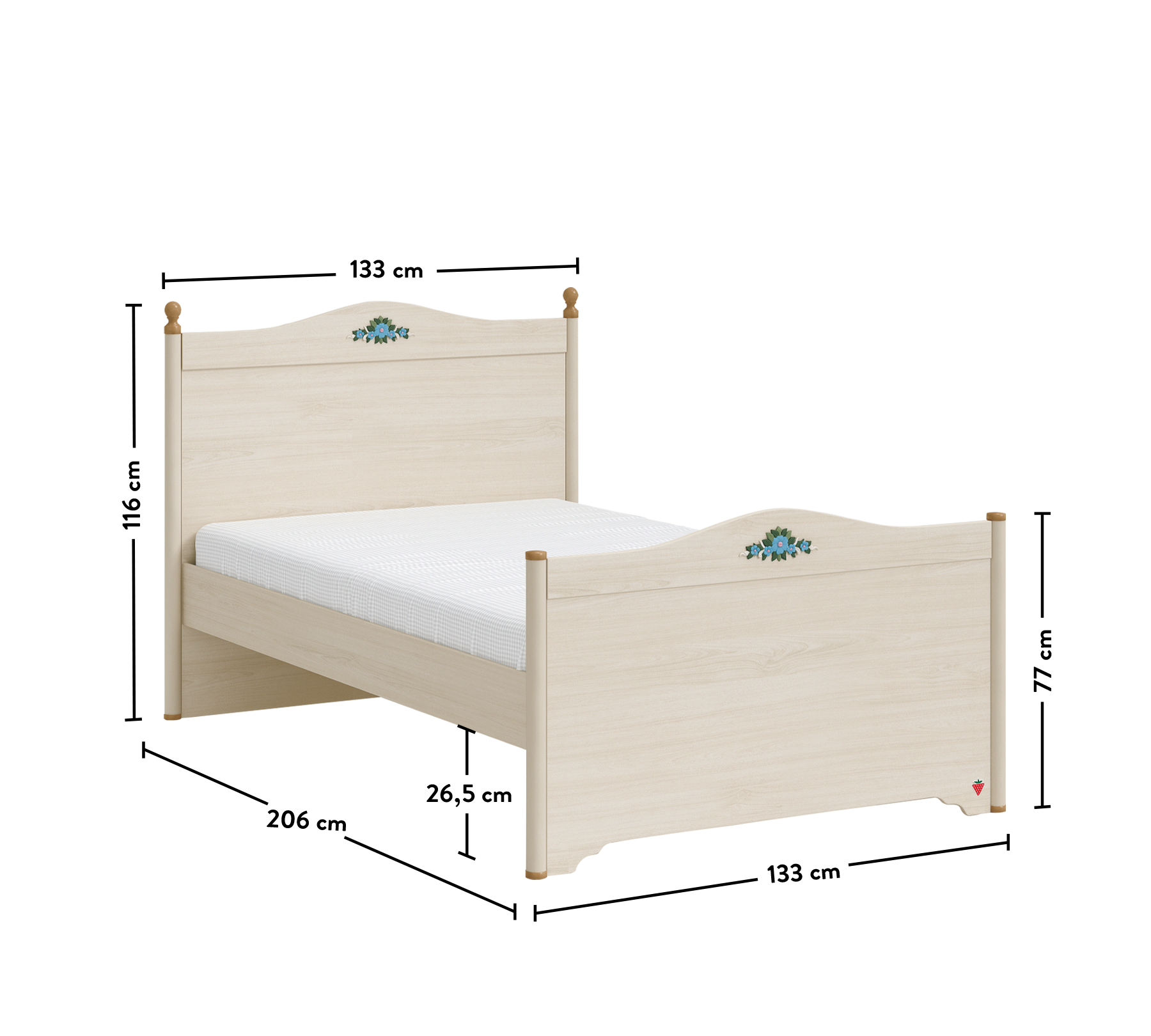 Karyola ka një kapacitet maksimal ngarkese prej 130 kg, me dimensionet e dyshemesë brenda 100x200 dhe 120x200 cm, e cila me konstruktin e saj të fortë mund të përdoret për shumë vite.