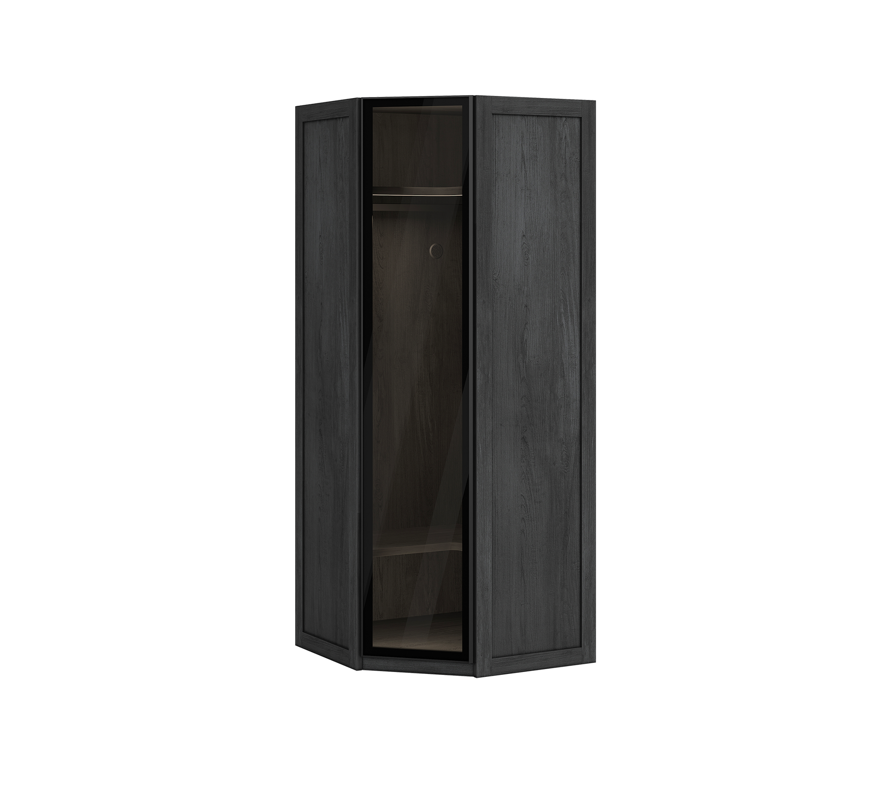 Dolapi me Kapak xhami në Kënd, është projektuar për të shfrytëzuar çdo centimetër të dhomës. Kapaku i xhamit të temperuar dhe ndriçimi LED e shndërrojnë hapësirën e këndit në një vitrinë moderne. Ofron një zgjidhje depozitimi si praktike ashtu edhe mbresëlënëse me rafte dhe hapësirë për varje. Me mundësinë e montimit të djathtas ose të majtas, përshtatet lehtësisht në mënyra të ndryshme të organizimit të dhomës.