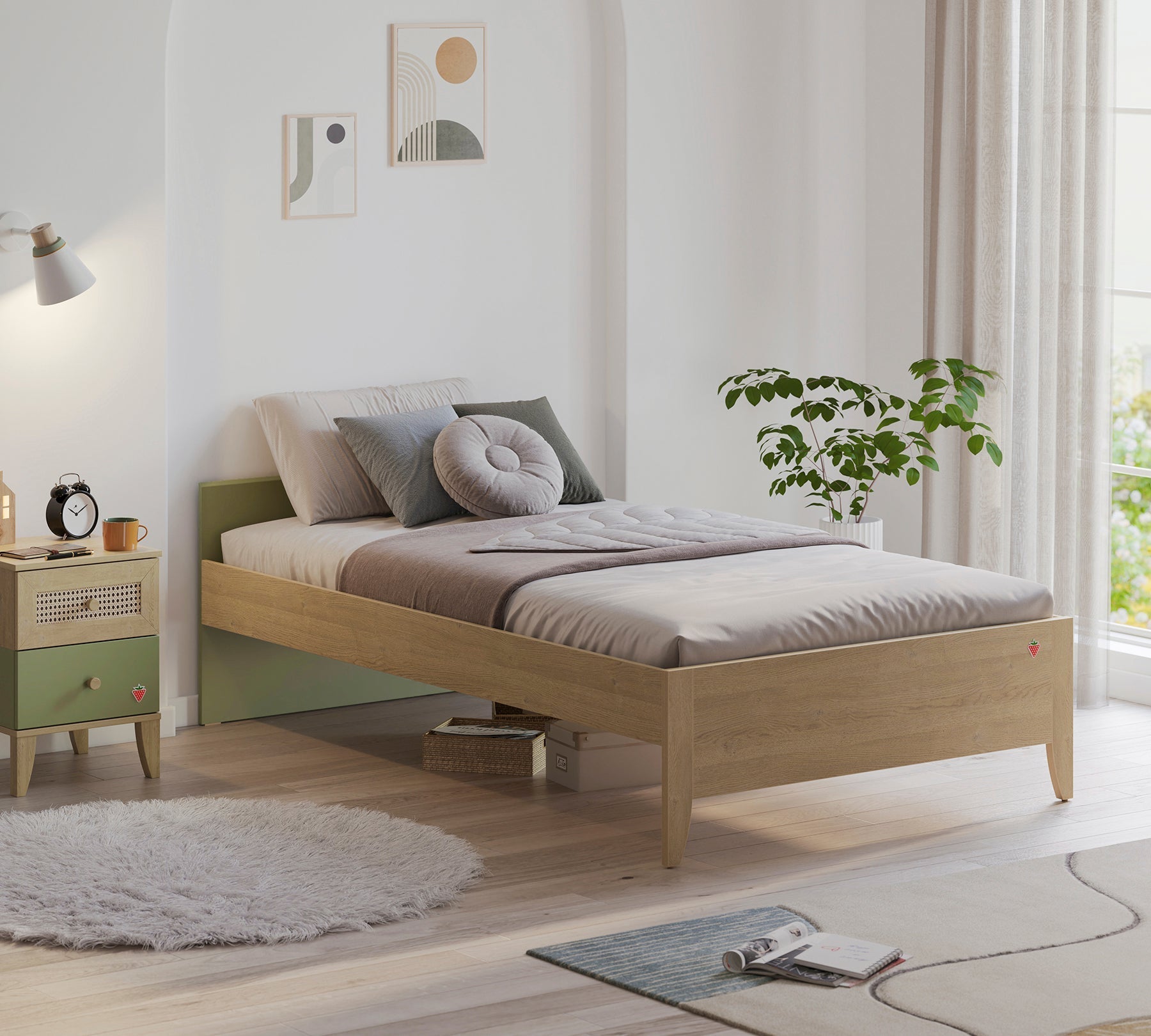 Jo përmes dizajnit të saj, por gjithashtu duke bashkuar funksionalitetin dhe estetikën, Loof Krevat pa Krye 120x200 cm, shkëlqen me harmoninë e ngjyrave Karina dhe Hazeran. Aplikimi Soft në maja të krye-krevati përmirëson komoditetin e kohës së kaluar në shtrat, duke e bërë pushimin një luks. Krevati ofron gjithashtu praktikë me organizimin nën shtrat.