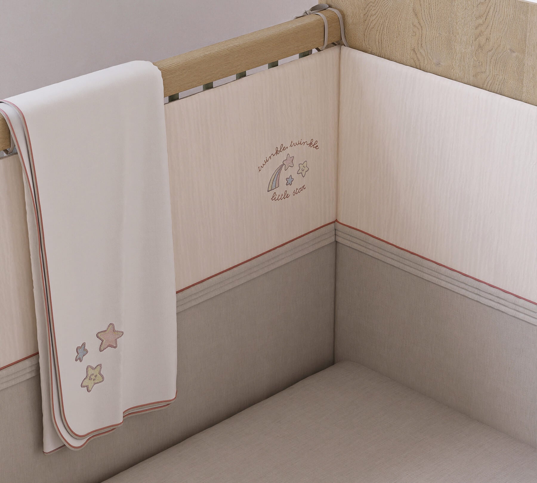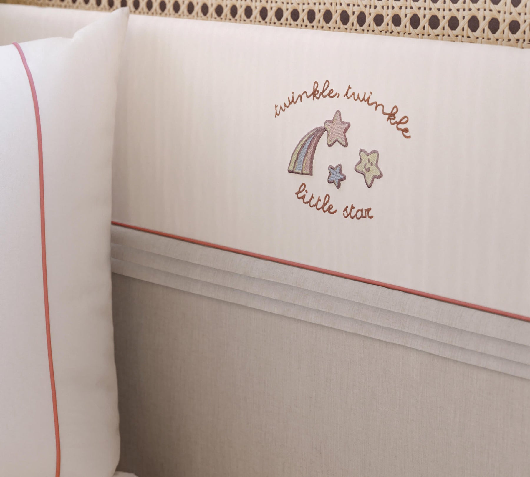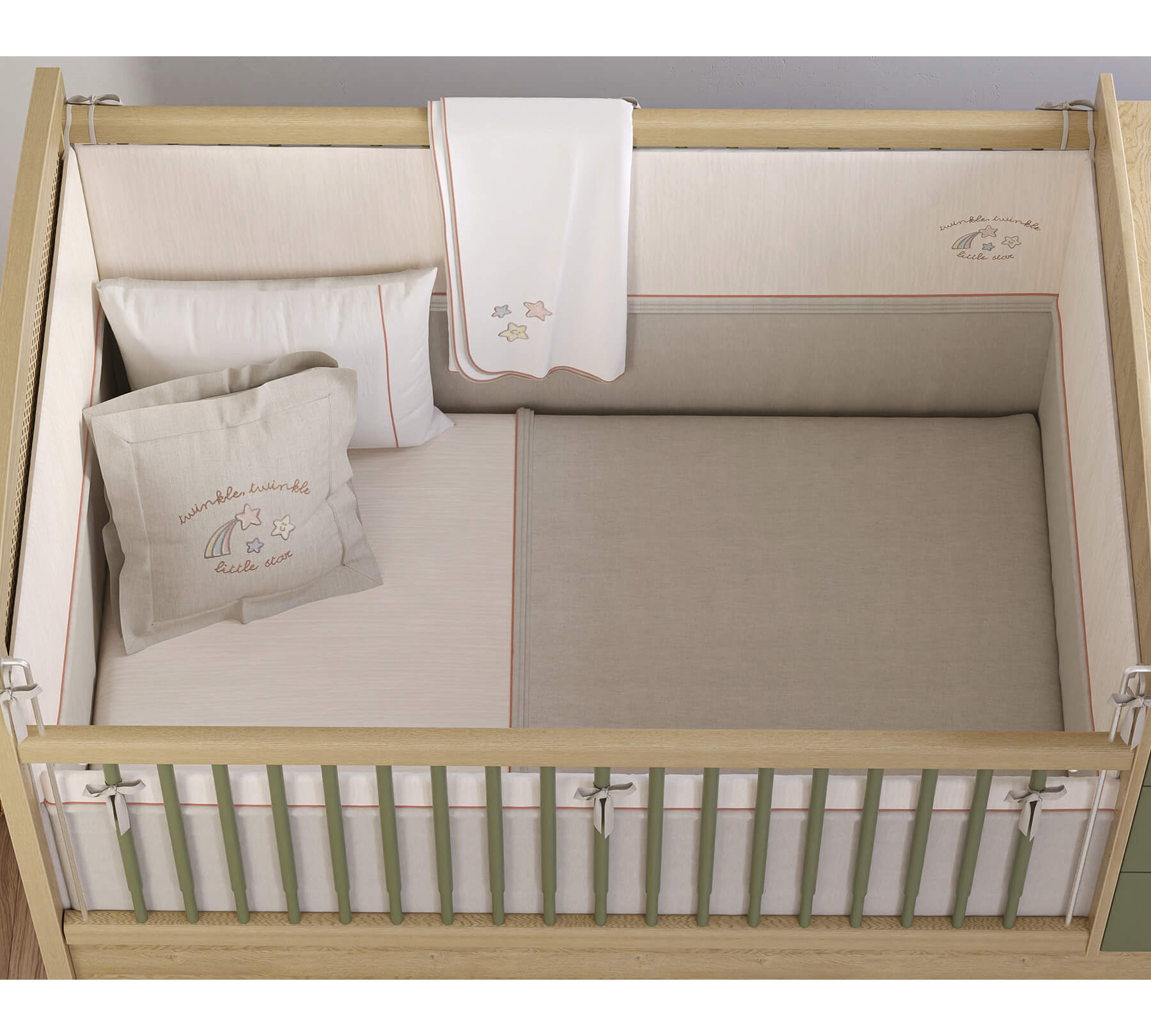 Ka 4 pjesë dhe është në përputhje me krevatin për bebe 70x140 cm me barriera dore.