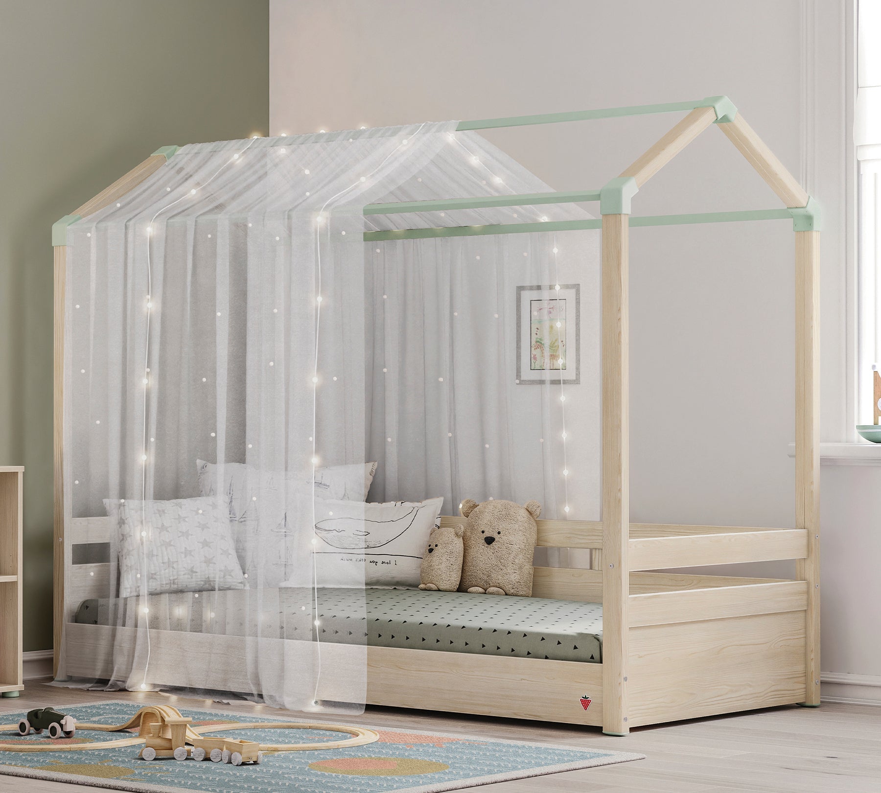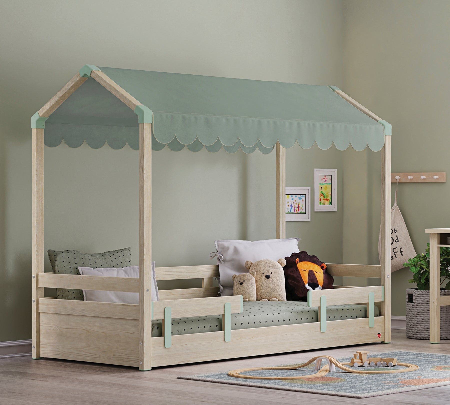 A nuk ishte e mrekullueshme nëse fëmijët tuaj zgjoheshin çdo mëngjes në një krevat me çati dhe ëndërronin? Krevati Montes Natural me Çati të Drejtë do të krijojë një ambient komod dhe elegant për fëmijët tuaj. Modeli, i cili është projektuar në ergonominë e lartësisë me 2 nivele, mund të përdoret me lehtësi deri në fund të fëmijërisë. Po ashtu, është e mundur të funksionalizohet moduli i krevatit të poshtëm kur niveli i lartësisë së krevatit është në pjesën e sipërme. Duke përfunduar Krevati Montes Natural me Çati të Drejtë me çadra në ngjyrat që do t'i pëlqejnë fëmijëve tuaj, mund të krijoni një ambient ku ata do të kalojnë aventura të mrekullueshme.