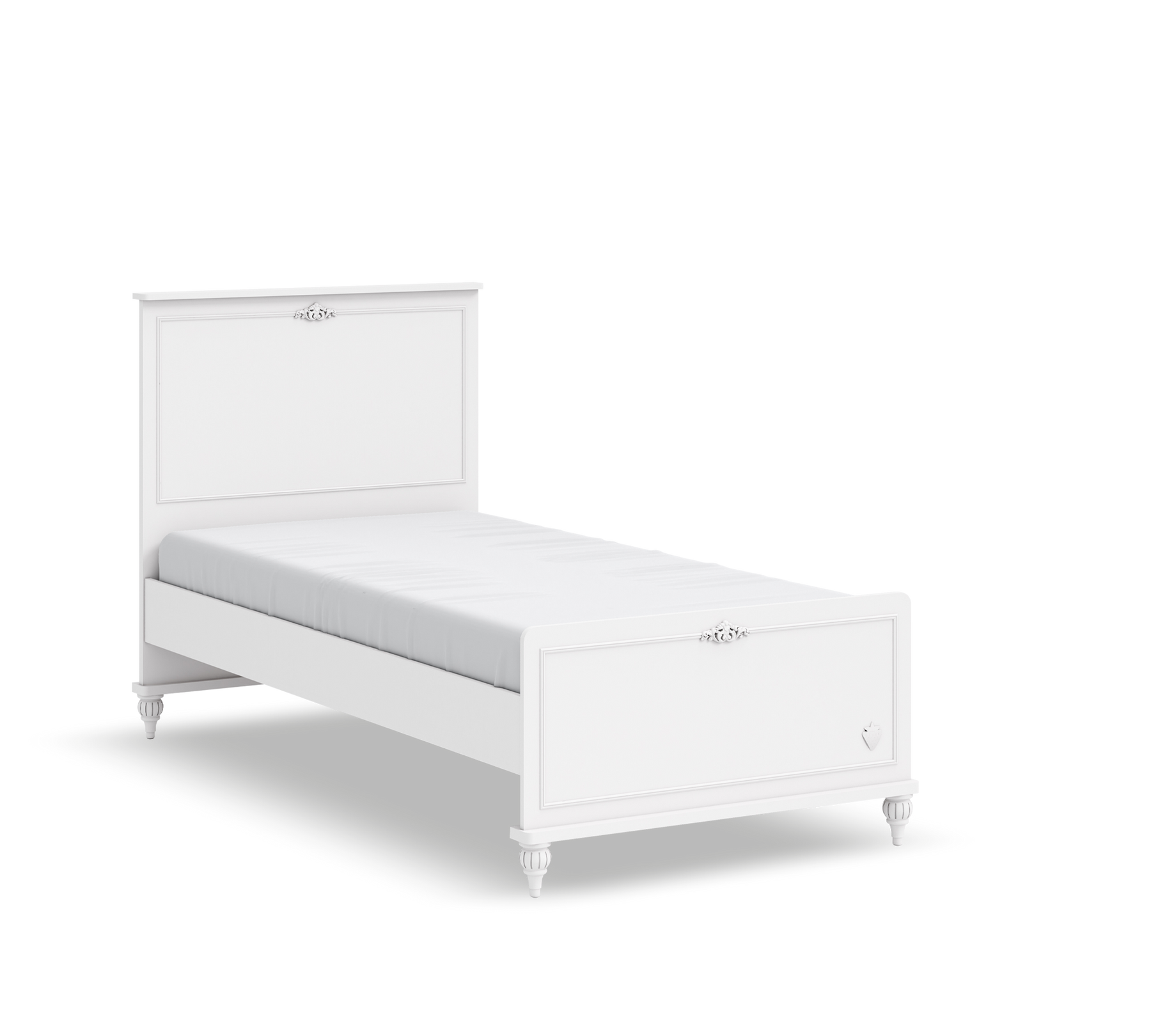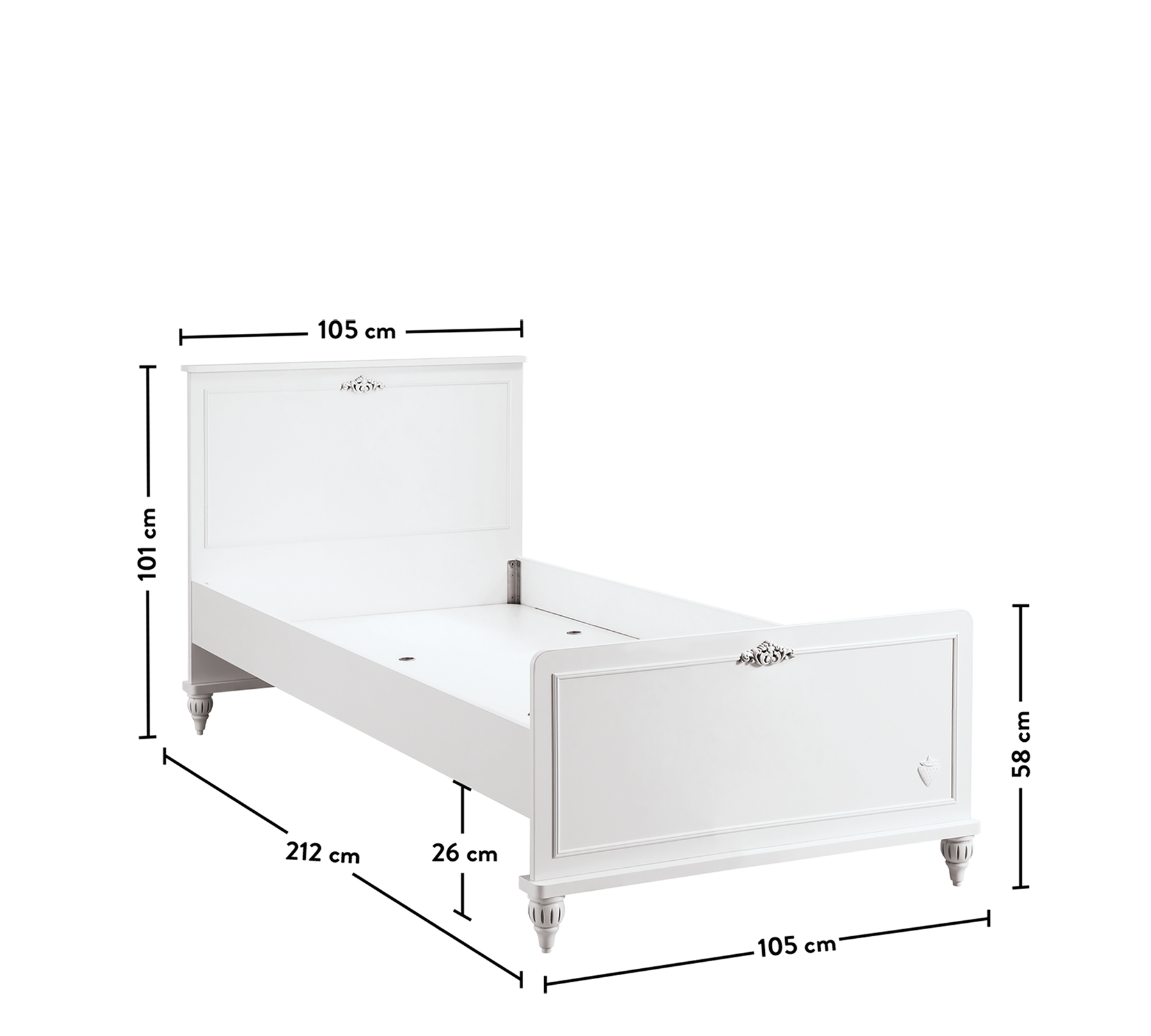 Me një dizajn të bardhë dhe delikat, Romantica Kryetë Karyola (100x200 cm) fiton një pamje përrallore dhe ofron siguri me materialet e saj të qëndrueshme. Aksesorët e bardhë në fund të karyolës dhe krahët e stilit rustik pasqyrojnë stilin utopik të princeshës që ëndërron fëmija juaj.