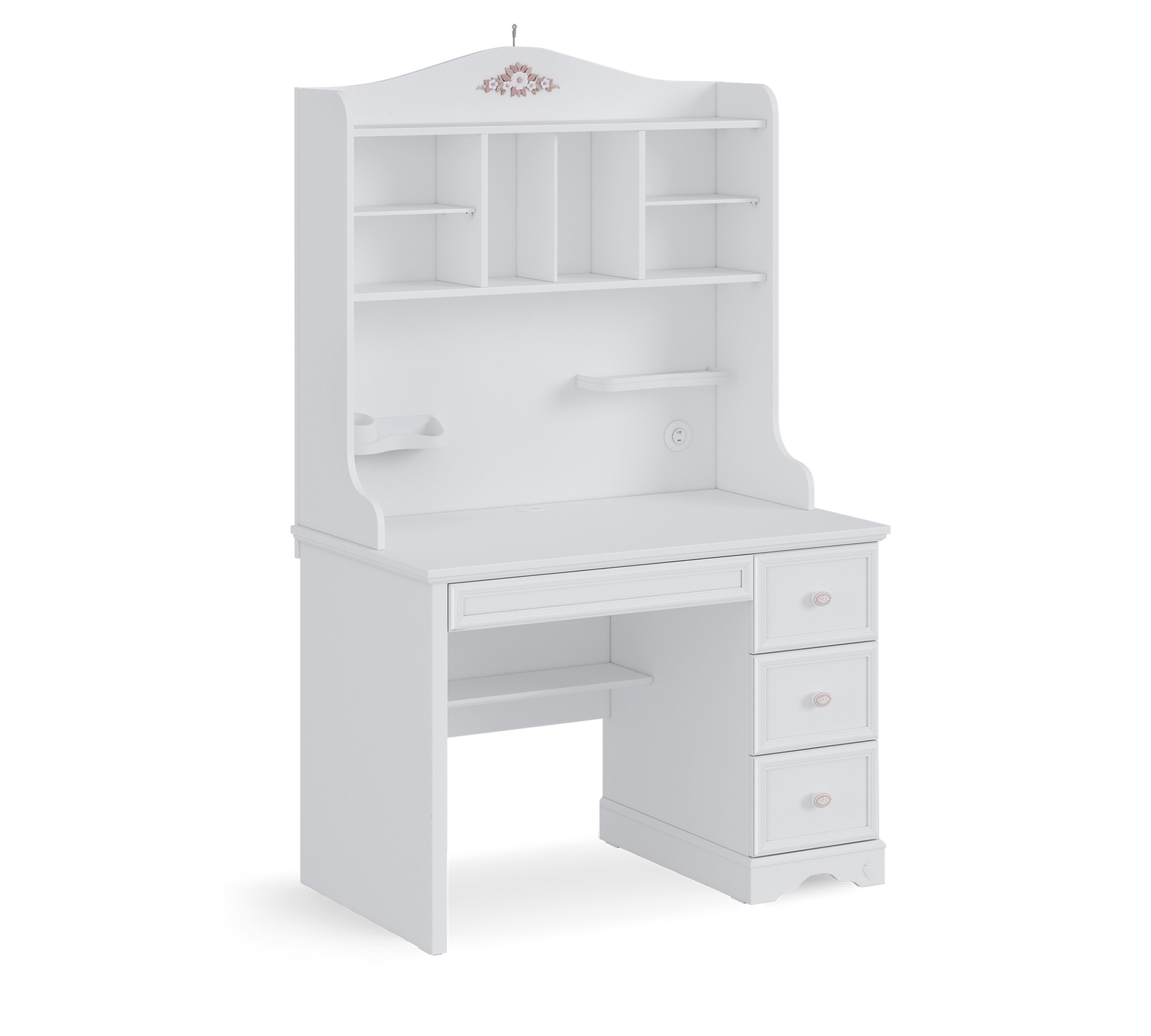 Me detajet e luleve që i japin një ajër elegant dhomës, njësia ergonomike e dizajnuar në mënyrë të përkryer për tabelën e punës të serisë Rustike e Bardhë mund të vendoset në mur me anë të aksesorëve të lidhjes, duke të siguruar për sigurinë e fëmijëve tuaj.
