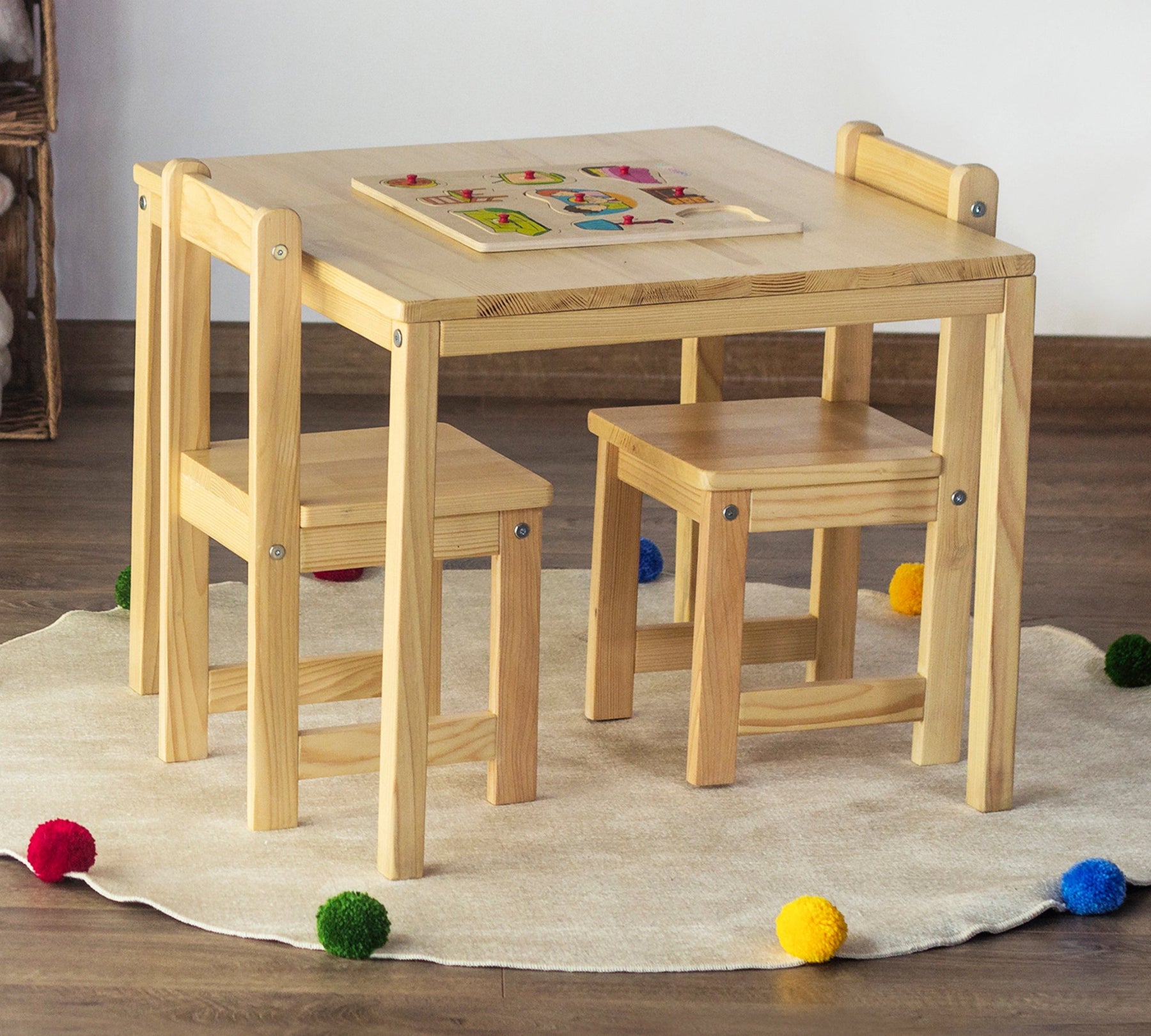 Set i Tavolinës dhe Karrigeve mund të përdoret për aktivitete si të ngrënë, vizatim e pikturim, lojëra puzzle, punime dorash, kohë për të luajtur dhe shumë aktivitete të tjera. Është një produkt i thjeshtë dhe të sigurt që siguron që fëmija juaj të kalojë momente argëtuese. Është prodhuar nga druri masiv të cilësisë së lartë, të fortë dhe të qëndrueshëm.