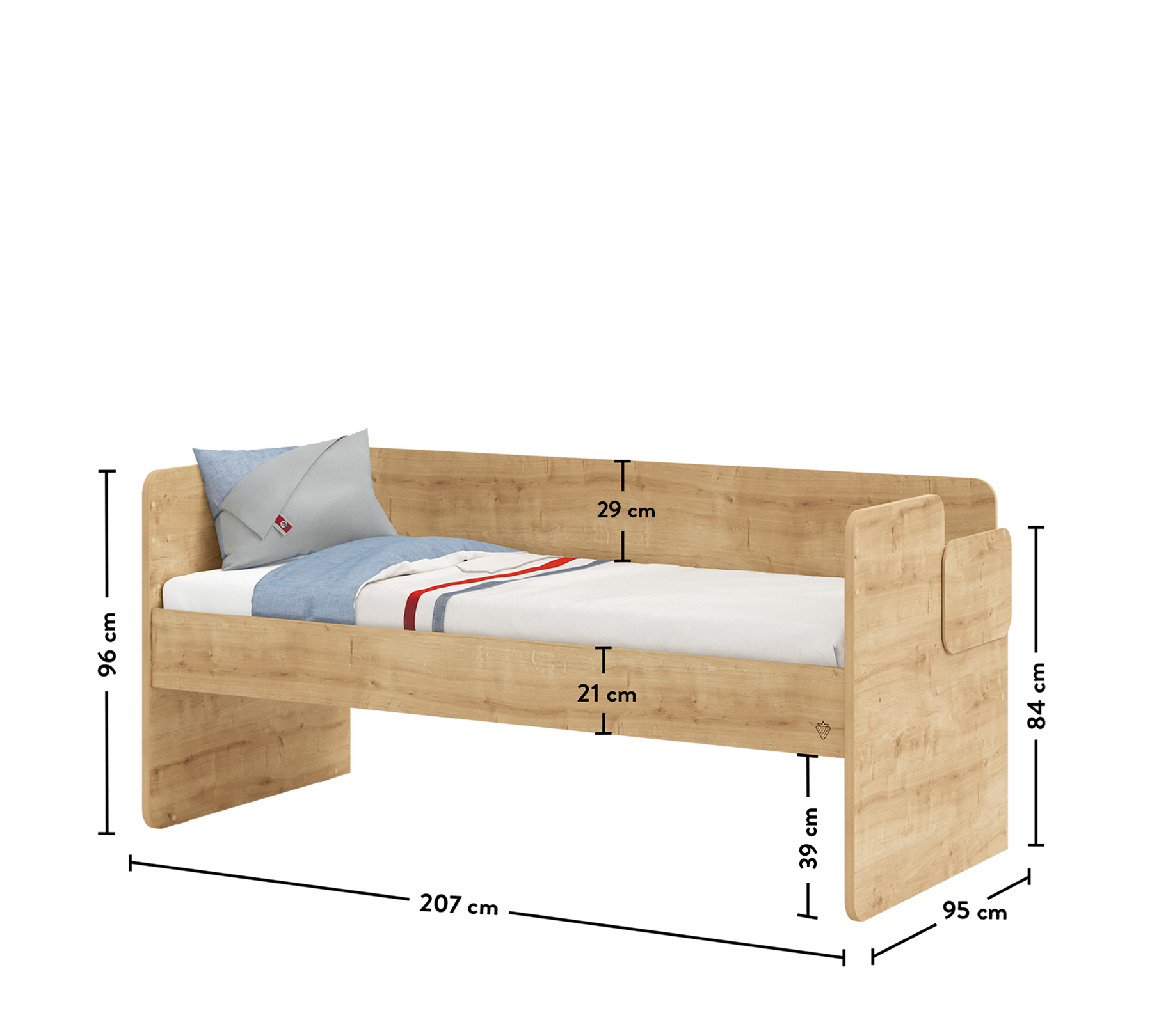 Shtrati, i cili ka një kapacitet mbajtës maksimal prej 130 kg dhe një madhësi të brendshme prej 90x200 cm, mund të përdoret për shumë vite me strukturën e tij solide.