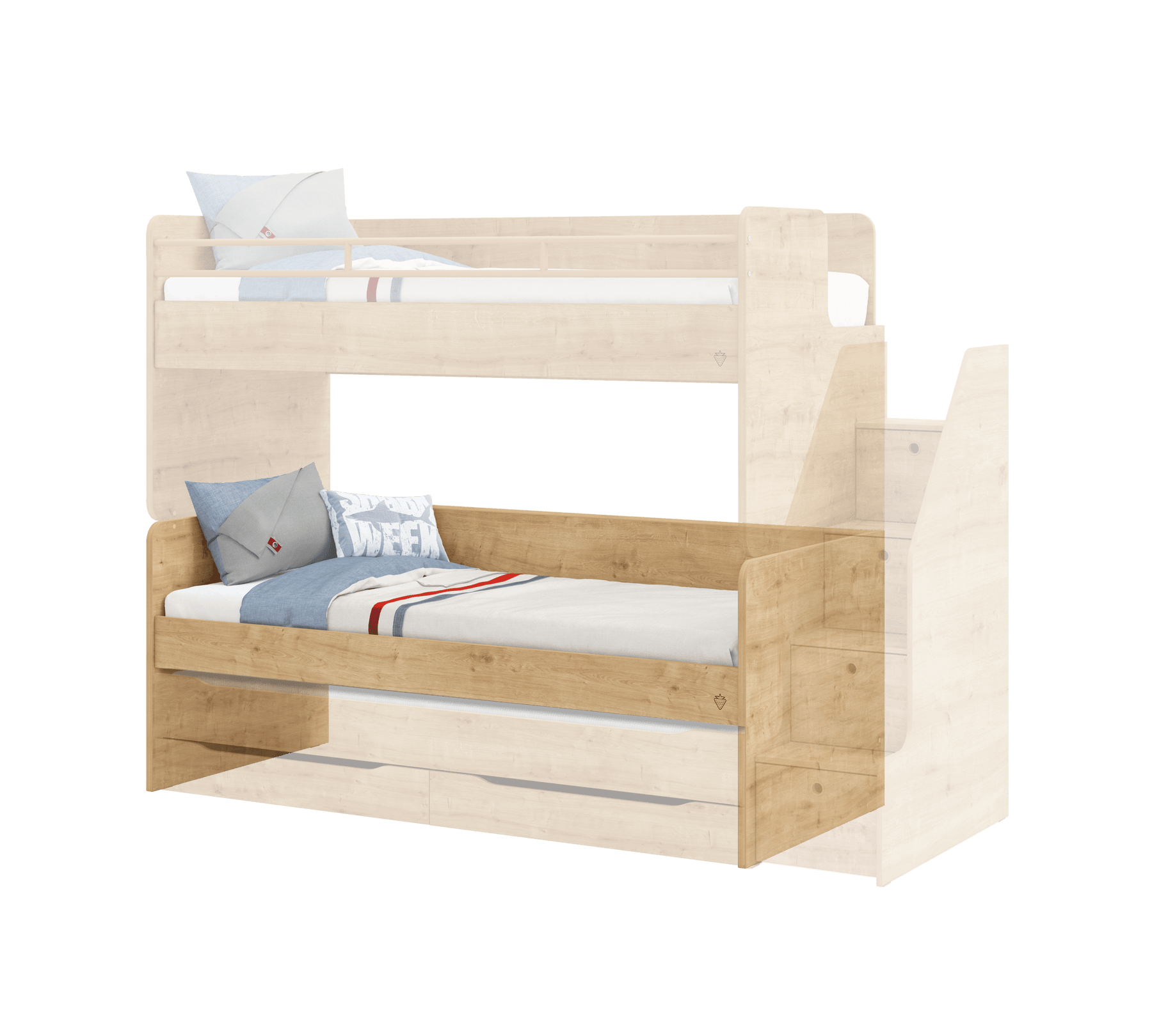 Mund të përdoret gjithashtu në harmoni me shtratin e sipërm dhe krevatin e poshtëm me sirtarë të serisë Studio, të cilët kanë të njëjtat ngjyra.